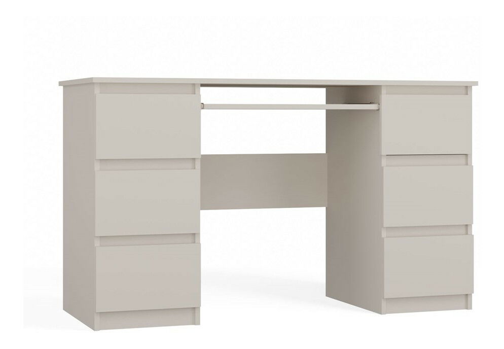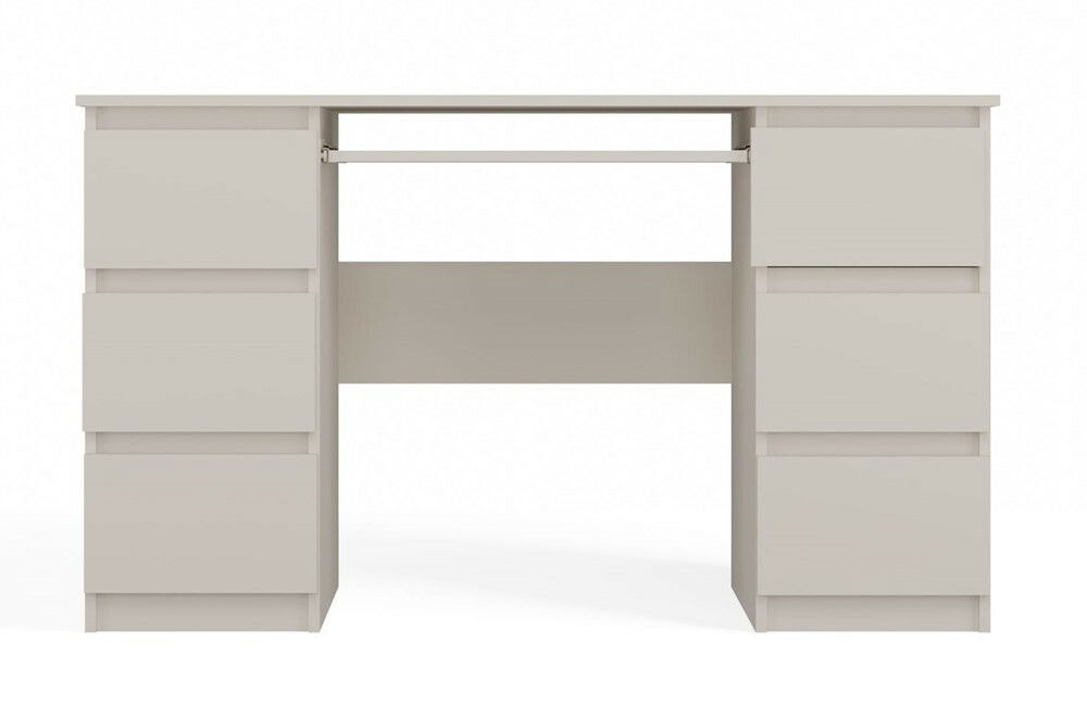 ZobrazitPC stolek Kwazulu 1 je ideálním řešením pro každou pracovní plochu, ať už v domácnosti nebo v kanceláři. Jeho moderní design v elegantní barvě kašmír dodává prostoru sofistikovanost a styl. S šesti prostornými zásuvkami nabízí dostatek místa pro dokumenty a kancelářské potřeby, zatímco vysouvací police na klávesnici zajišťuje ergonomické používání. Vyroben z kvalitní laminované dřevotřísky, je odolný vůči poškrábání a snadno se udržuje. Tento praktický a funkční nábytek se stane nedílnou součástí vaší pracovní zóny.