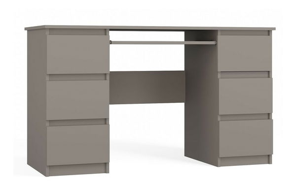 ZobrazitPC stolek Kwazulu 1 je ideálním řešením pro každou pracovní plochu, ať už v domácnosti nebo v kanceláři. Jeho moderní design ve světle hnědé barvě dodává prostoru eleganci a styl. S šesti prostornými zásuvkami nabízí dostatek místa pro dokumenty a kancelářské potřeby, zatímco vysouvací polička na klávesnici zajišťuje ergonomické používání. Vyroben z laminované dřevotřísky, je odolný vůči poškrábání a snadný na údržbu, což zaručuje dlouhou životnost a praktičnost. Tento stolek je skvělou volbou pro každého, kdo hledá kombinaci funkčnosti a estetiky.