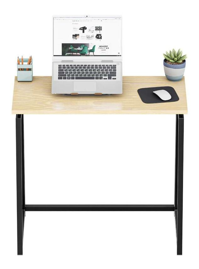 Lehký, skládací stůl v minimalistickém stylu. Stačí sundat nohy a snížit stolní desku, abyste ušetřili místo doma nebo v kanceláři. Jednoduchý skládací systém znamená, že za pár chvil po skončení práce nebude po vaší domácí kanceláři ani stopy a vy získáte prostor pro rozvíjení svých vášní. Po složení lze stůl použít jako funkční polici, perfektní pro umístění knih, rostlin, sklenic, vázy nebo dekorací. Pracovní deska s povrchovou úpravou imitující přírodní dřevo se perfektně hodí do loftových, vintage a klasických interiérů. Stolová deska o tloušťce 15 mm zaručuje dlouhodobou odolnost a kvalitní materiály a spoje zajišťují stabilitu při práci. Ve složeném stavu je šířka stolu pouhých 10 cm, díky čemuž je ideální do malé místnosti. Lehká, ale odolná konstrukce.