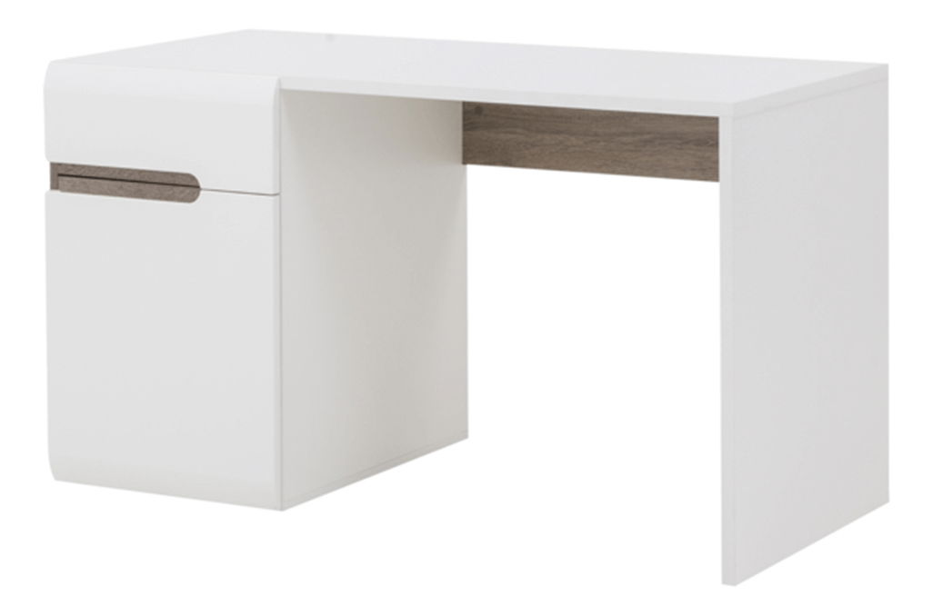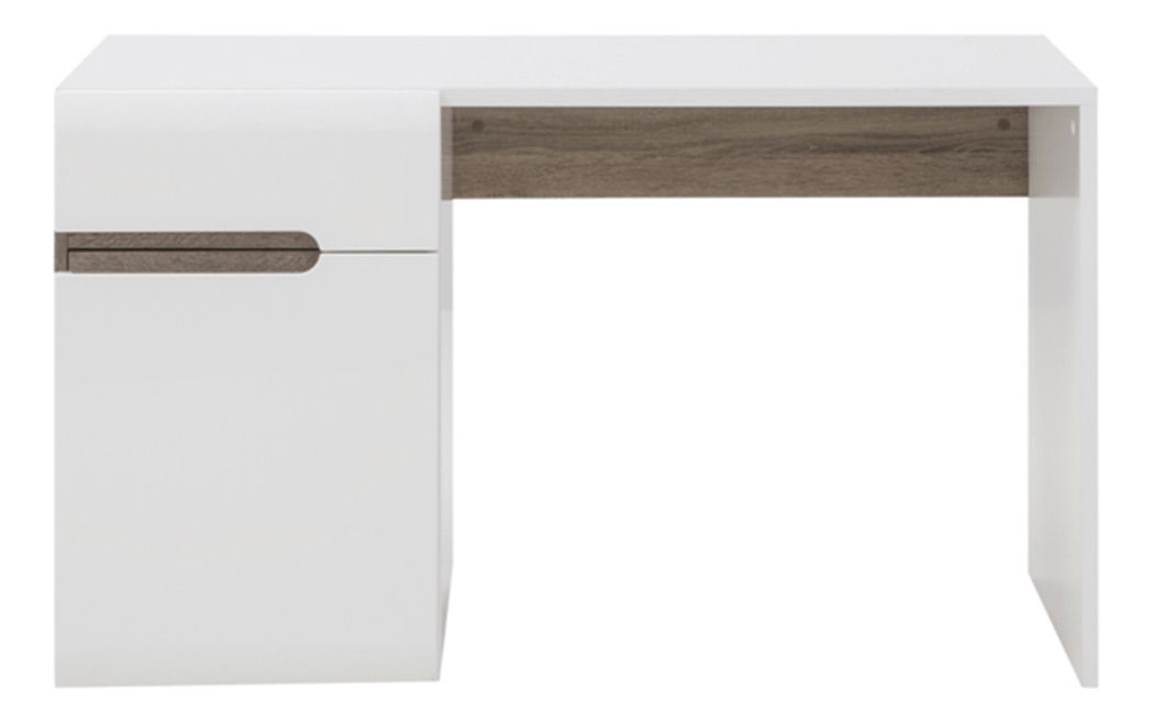 PC stolek Lysander Typ 80 je ideální pro ty, kdo hledají praktickou a moderní pracovní plochu. Stolek má bílou extra vysokou lesklou HG úpravu a korpus v matné úpravě dub sonoma truflový. Dvířka jsou vyrobena z DTD laminovaného materiálu a mají moderní zaoblené hrany. Rozměry stolku jsou 125 x 61,9 x 72,8 cm a tloušťka materiálu je 16 mm. Stolek je dodáván v demontu a je velmi jednoduchý na sestavení. S PC stolkem Lysander Typ 80 získáte nejen praktickou pracovní plochu, ale také moderní kus nábytku, který se hodí do každého interiéru.