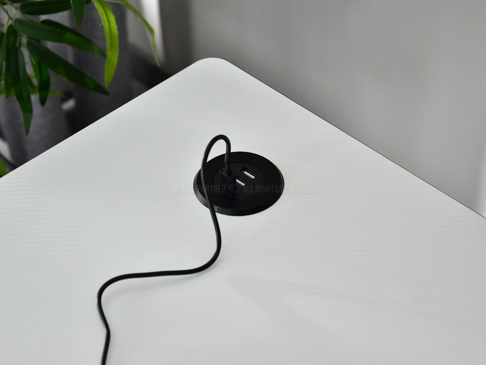 obdélníkový vrch, USB, držák na sklenici, 2 věšáky, kabelová průchodka, organizér na kabely