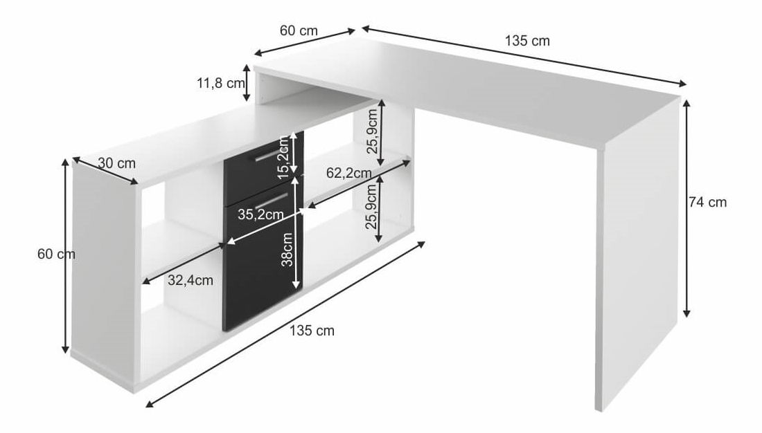 Praktický PC stolek je univerzální a tudíž si ho můžete poskládat na pravou, ale i na levou stranu. Boční část stolku nabízí dostatečný prostor pro vaše věci protože je vybavena skříňkou, zásuvkou a poličkami.