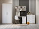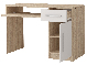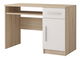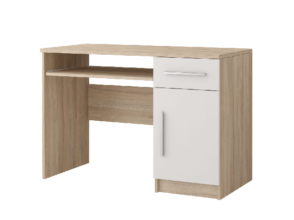 PC stolek Oleg v minimalistickém stylu je vyroben z 16 mm silné dřevotřísky, použité pro vnější i vnitřní části, a doplněn o 0,5 mm ABS hranami pro zvýšenou odolnost a estetický vzhled. Stolek má stříbrné, plastové úchyty, které přispívají k jeho modernímu designu. Tento stolek je navržen bez nožek, což umožňuje stabilní umístění přímo na podlaze. Obsahuje jedny dveře, jednu poličku a jednu zásuvku, poskytující dostatek prostoru pro ukládání počítačových příslušenství a kancelářských potřeb. Dále je vybaven deskou na klávesnici, což zvyšuje jeho funkčnost a pohodlí při práci. PC stolek Oleg je ideální pro studenty nebo profesionály, kteří hledají jednoduché, ale efektivní pracovní prostředí.