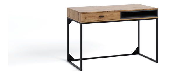 PC stolek Oliver PC (dub artisan + černá matná) je ideálním doplňkem do vašeho pracovního prostoru. S výškou 80,5 cm a hloubkou 60 cm je dostatečně velký pro uspokojení vašich potřeb. Stolek je vyroben z laminované desky o tloušťce 16 mm a má ABS hrany, které zajišťují jeho pevnost. Plastové úchyty a černá deska na zadní straně dodávají stolku elegantní vzhled. S tichým dojezdem a kuličkovými výsuvy s jednou zásuvkou je tento stolek praktický a funkční. Rám je vyroben z kovu s kluzáky pro snadné přesouvání a maximální výkon stolku je 20 kg, zatímco maximální výkon zásuvky je 3 kg. Rozměry balíku č.1 jsou 127,5 x 66,5 x 9,5 cm o hmotnosti 25,5 kg a rozměry balíku č.2 jsou 66 x 63,5 x 9 cm o hmotnosti 14 kg. Zvolte tento kvalitní a praktický stolek pro vaše pracovní potřeby.