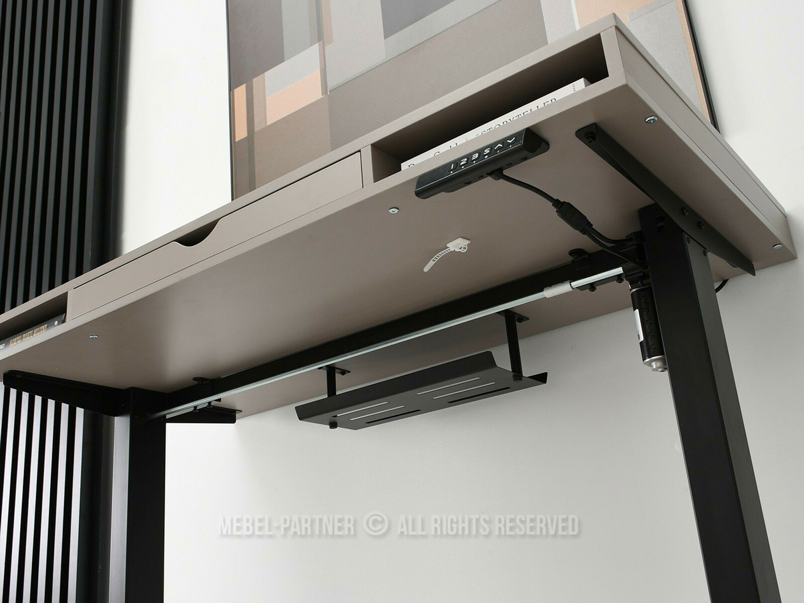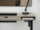 obdélníková deska, s otevřenými policemi, se zásuvkou, s pomocnou policí pod deskou
