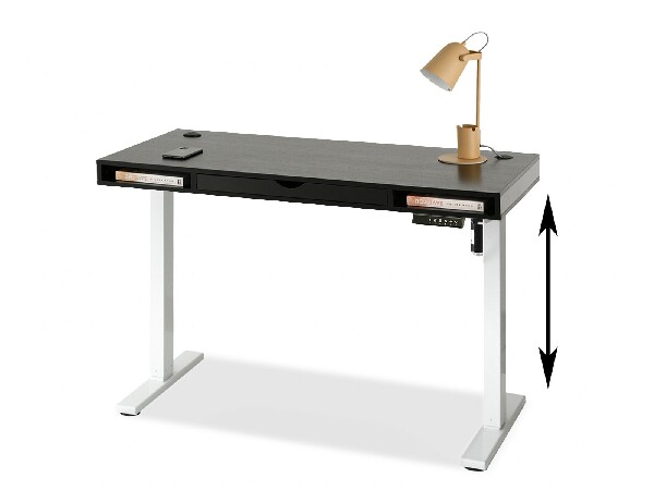 obdélníková deska, s otevřenými policemi, se zásuvkou, s pomocnou policí pod deskou