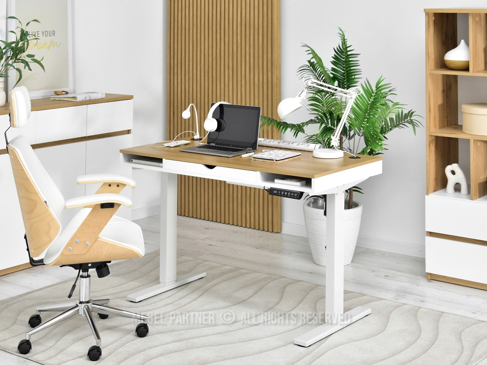 PC stolek Osto 120 (dub bílý + bílá)