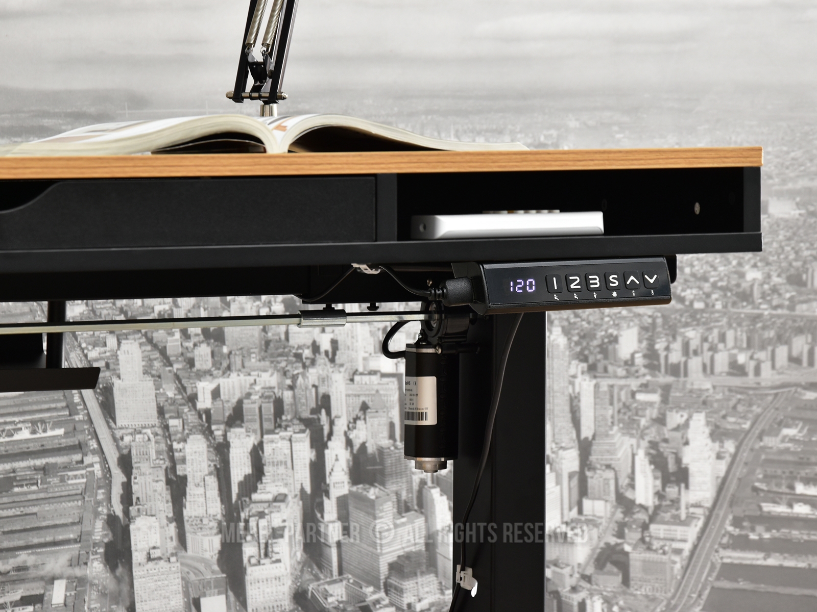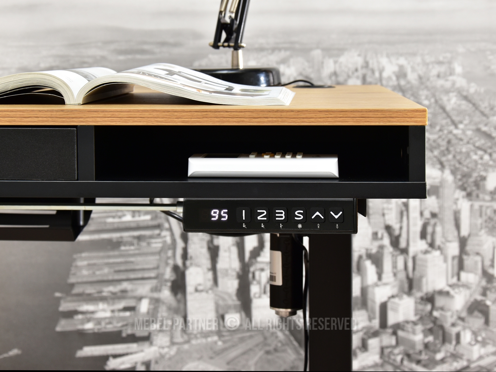 obdélníková deska, s otevřenými policemi, se zásuvkou, s pomocnou policí pod deskou