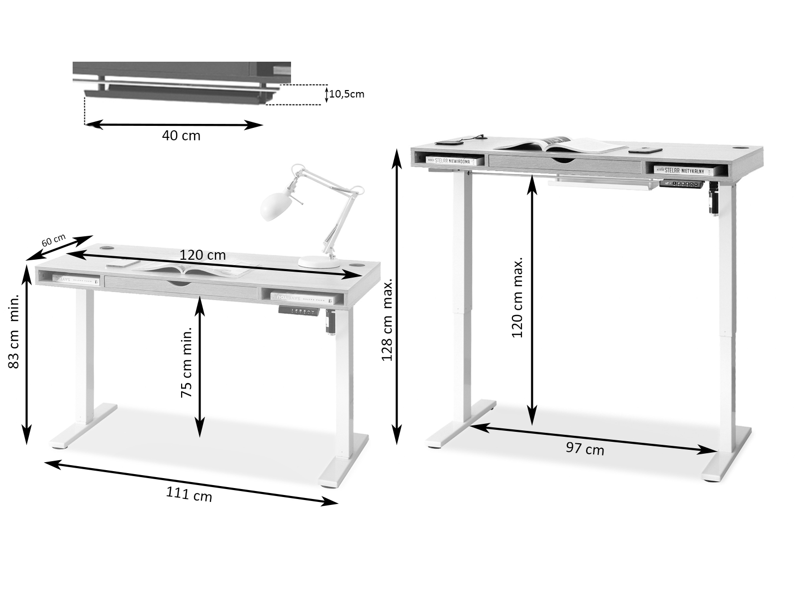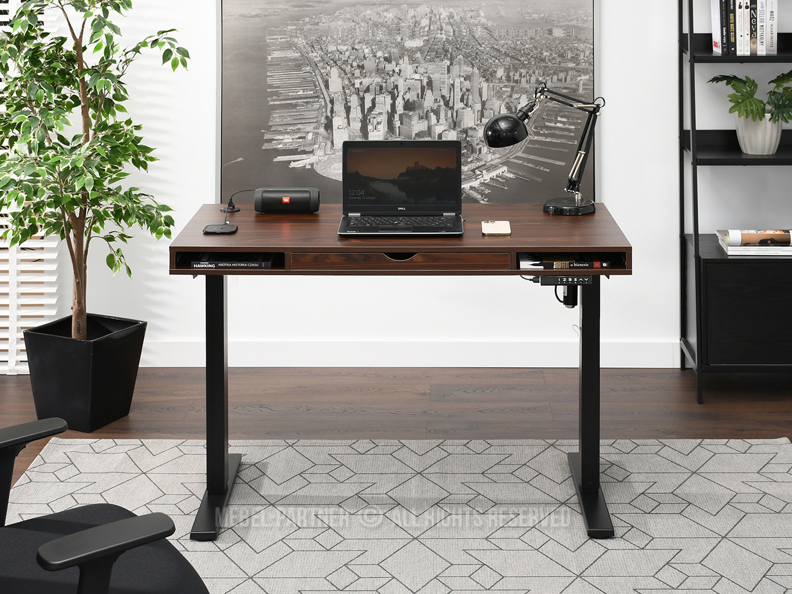 obdélníková deska, s otevřenými policemi, se zásuvkou, s pomocnou policí pod deskou