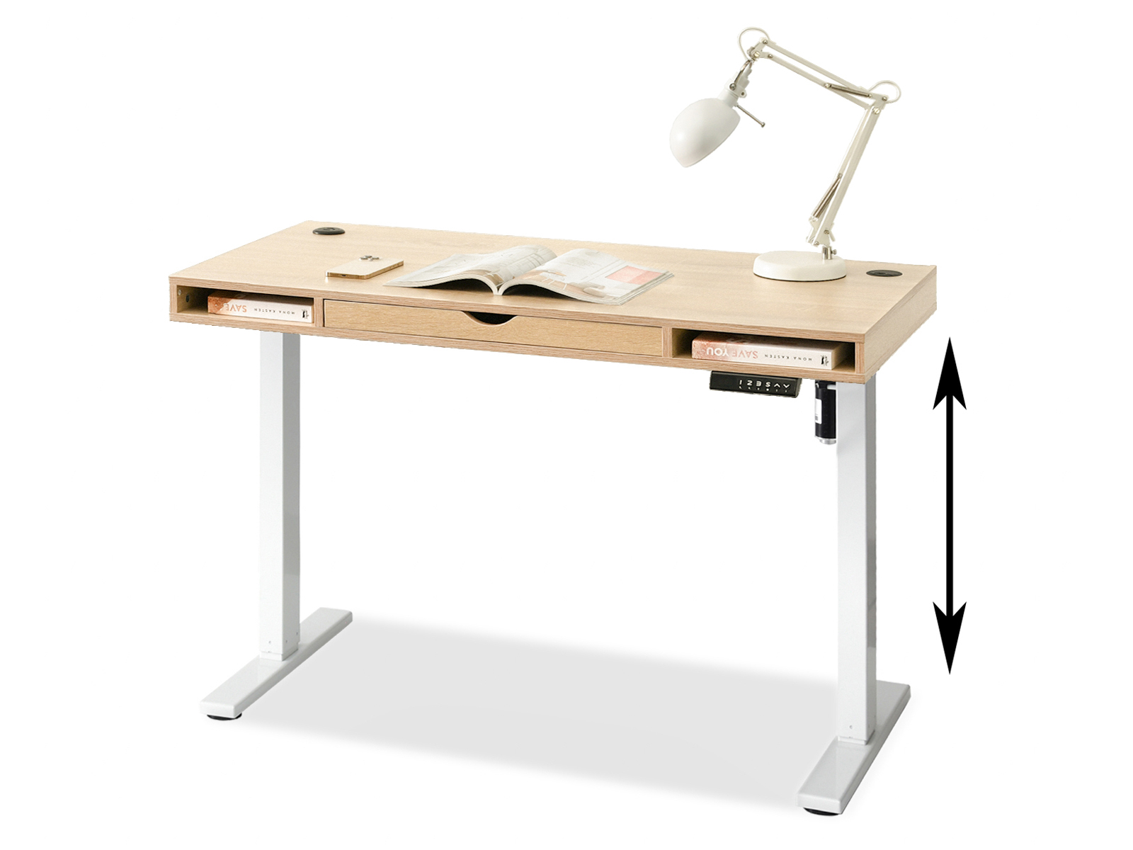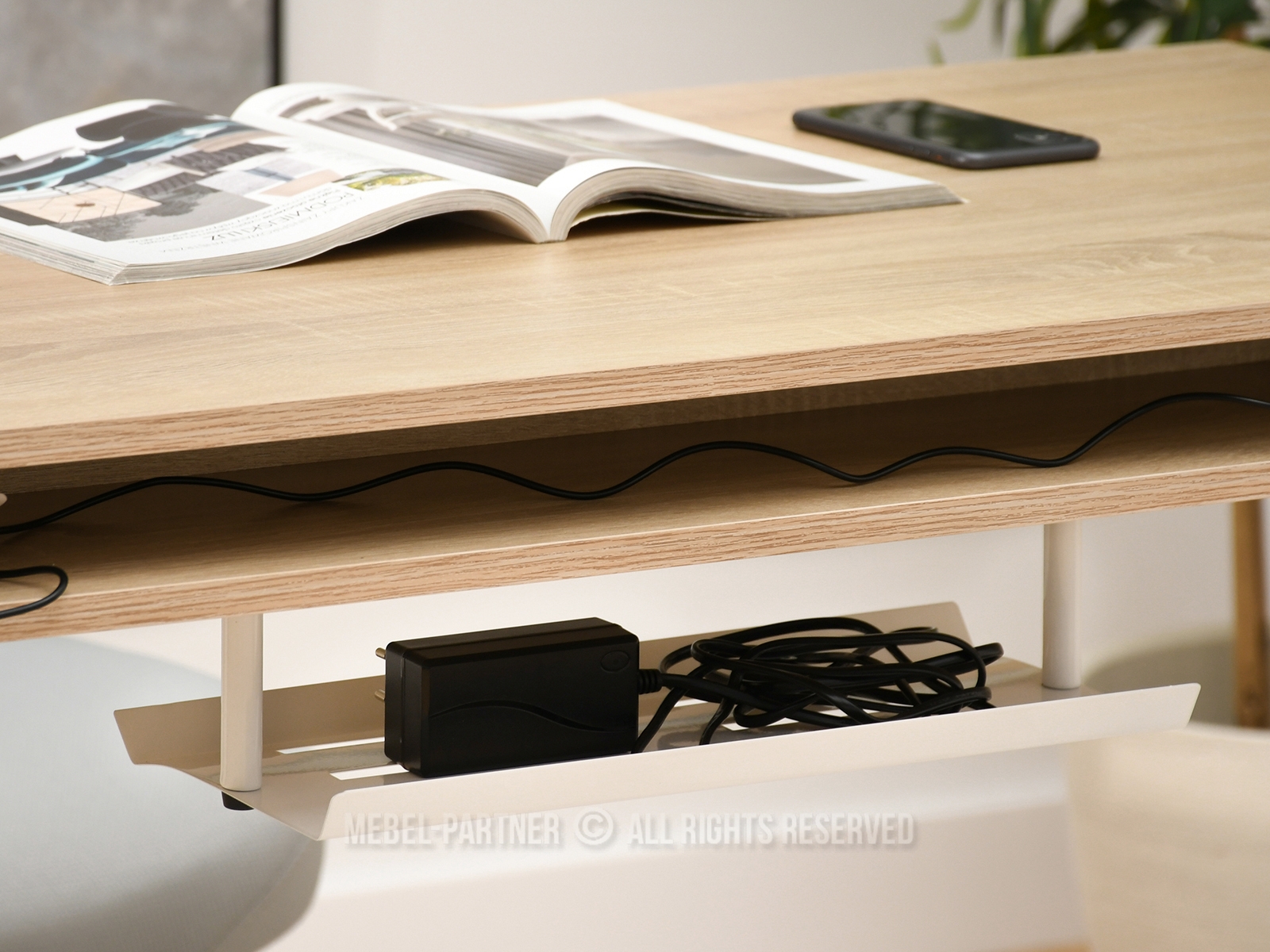 obdélníková deska, s otevřenými policemi, se zásuvkou, s pomocnou policí pod deskou
