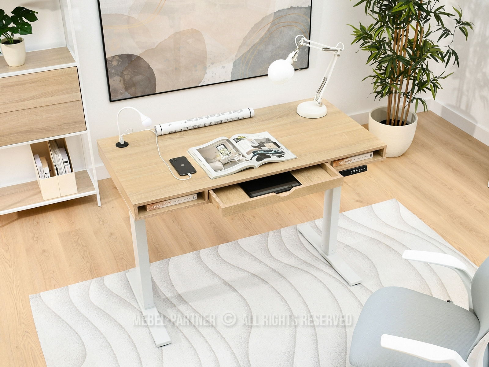 obdélníková deska, s otevřenými policemi, se zásuvkou, s pomocnou policí pod deskou