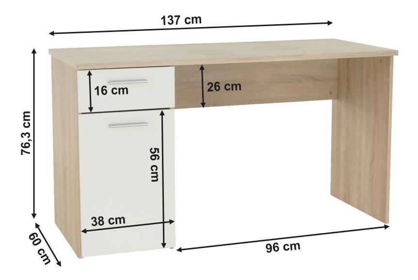 PC stolek Egon se svým moderním designem hodí do pracoven, studentských pokojů nebo i kanceláří. V levé části stolku se nachází skříňka a zásuvka. Stolek je v barevném provedení dub sonoma v kombinaci s bílou barvou.