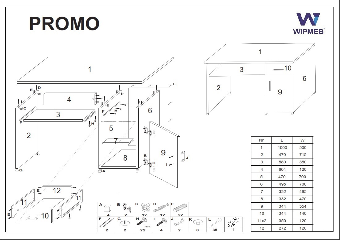 Jednoduchý jednobarevný PC stolek s výsuvnou poličkou pro klávesnici, která je umístěna na levé straně. Svými kompaktními rozměry je ideální do menších pracoven. Na pravé straně se pod horní deskou nachází zásuvka a pod ní je umístěna skříňka s jedněmi dvířky. Kvalitu zpracování potvrzuje použití odolných ABS hran na všech místech řezu desky a vybavení stolku odolnými kovovými úchyty. Barevné provedení na výběr: olše, ořech, buk, dub sonoma.
