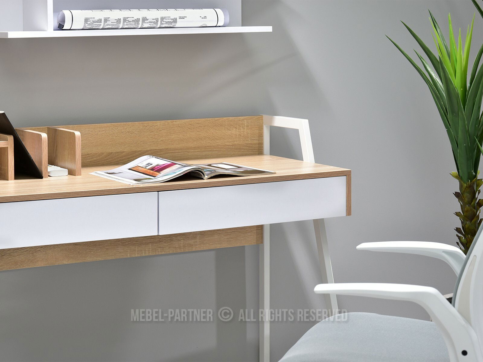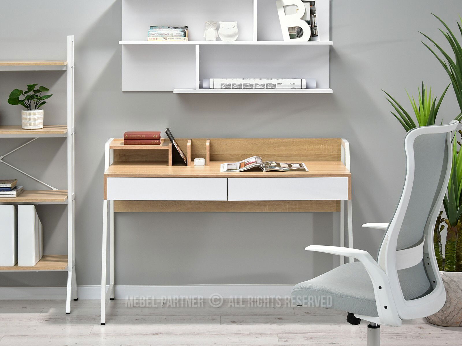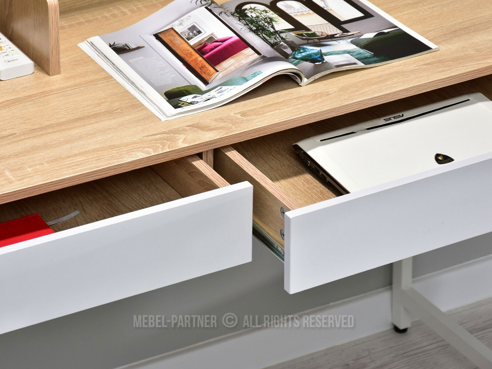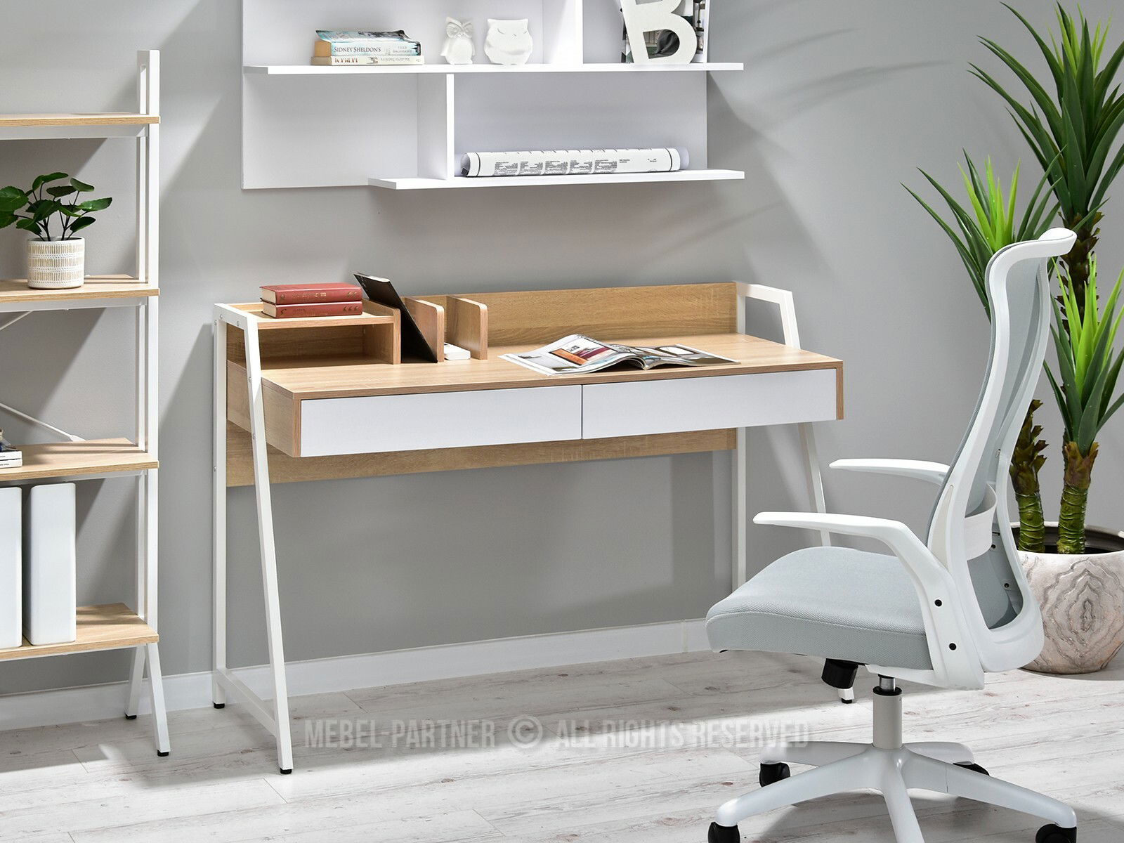PC stolek Richiel (dub + bílá)