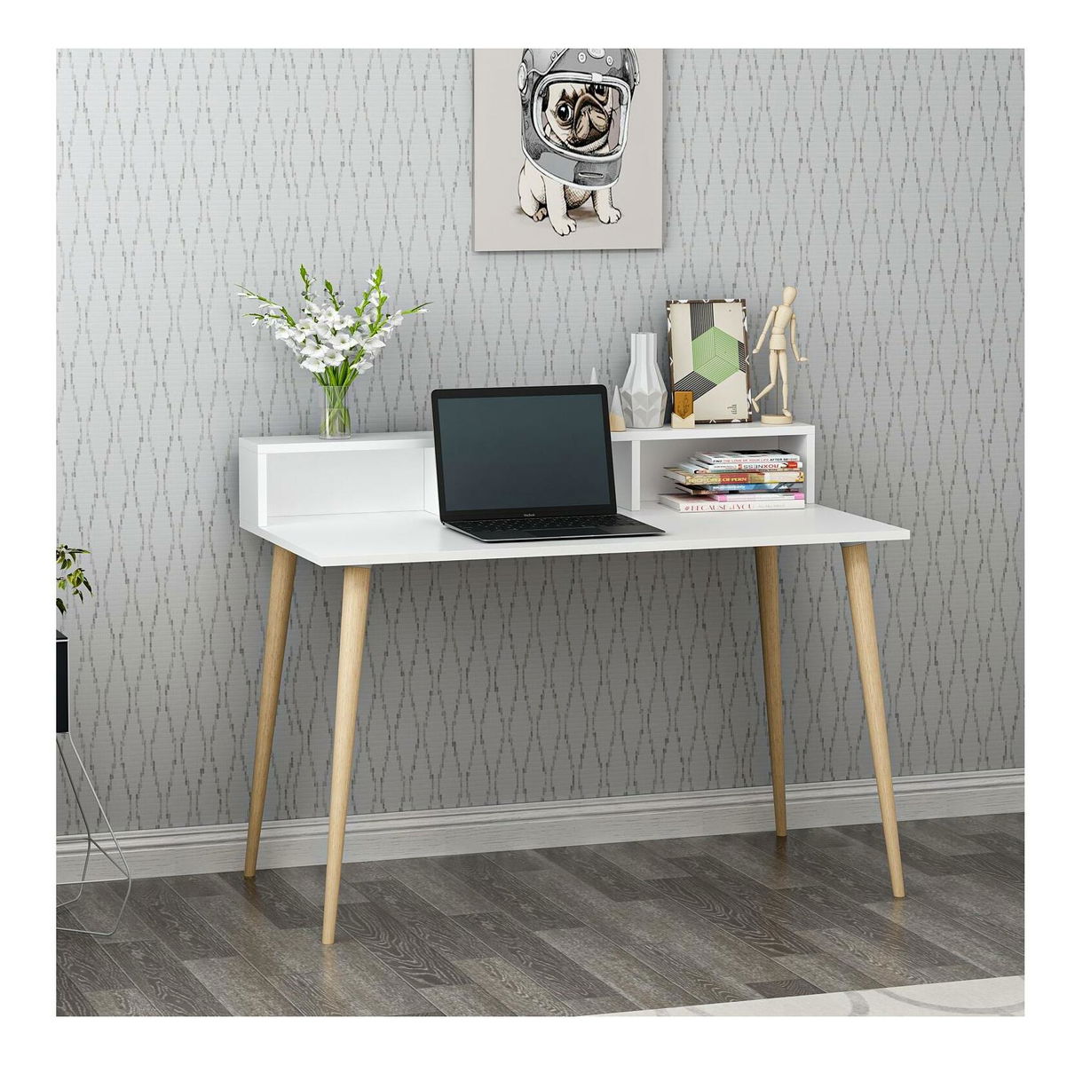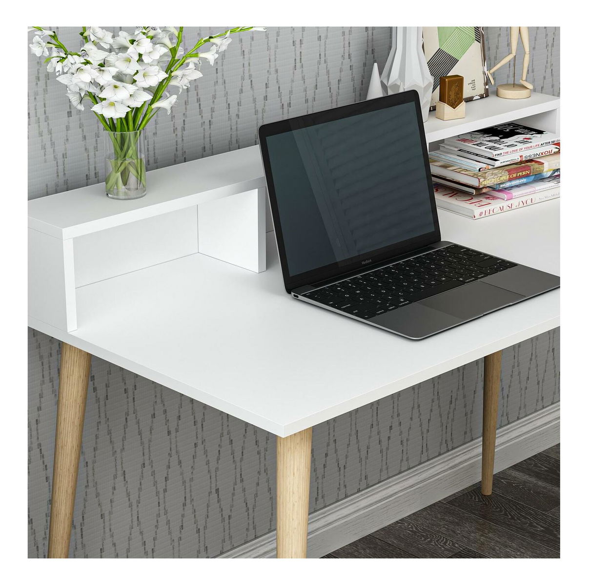 PC stolek Ronasotta 2 (bílá + dřevo)