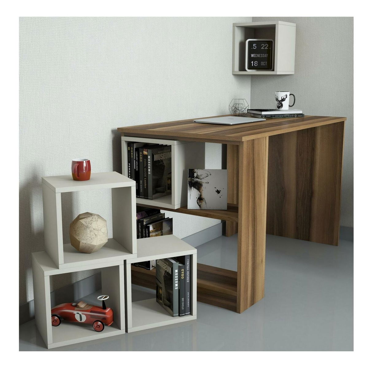 - PC stolek s policí Blanchet (ořech + krémová)