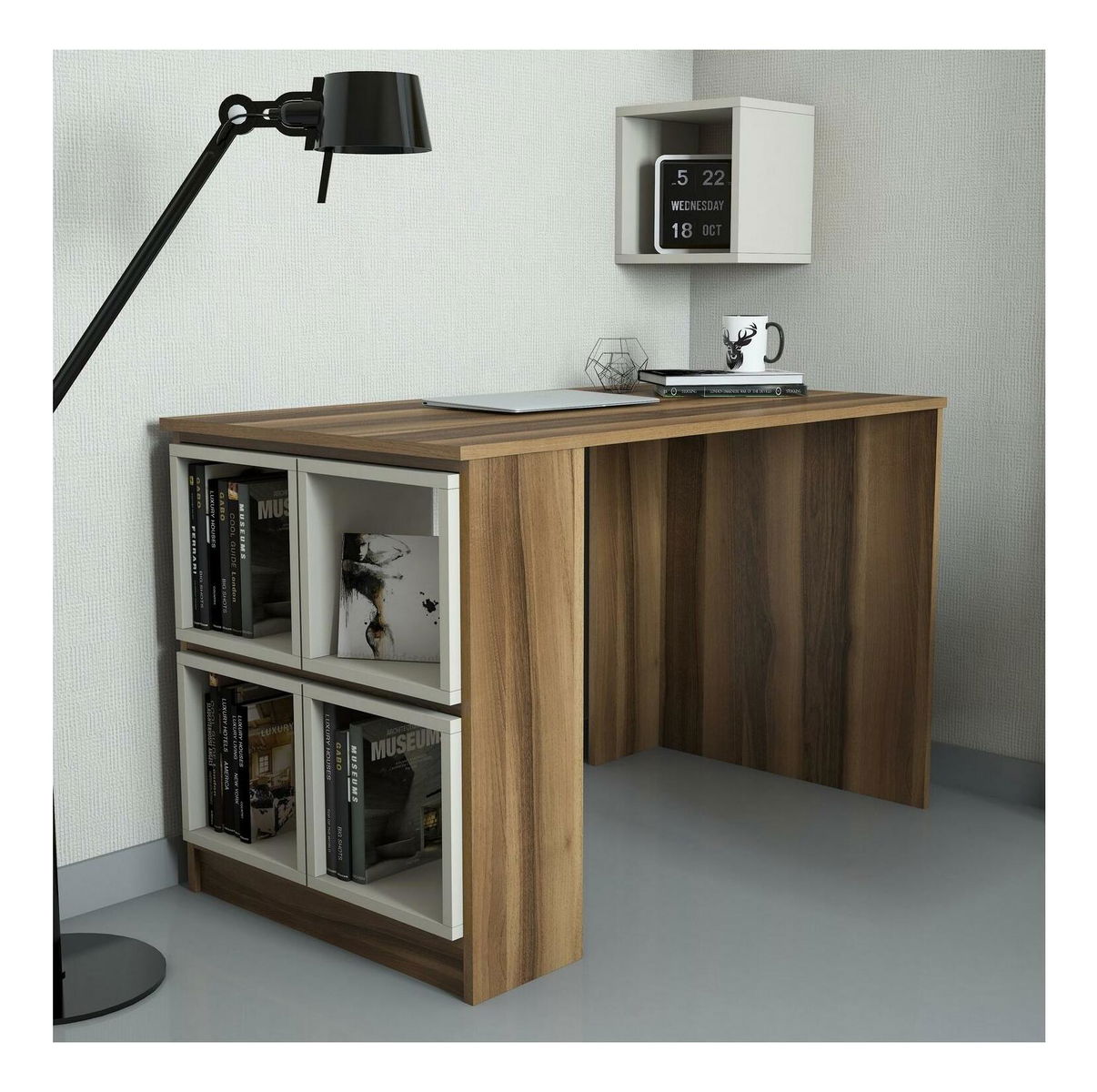 PC stolek s policí Blanchet (ořech + krémová)