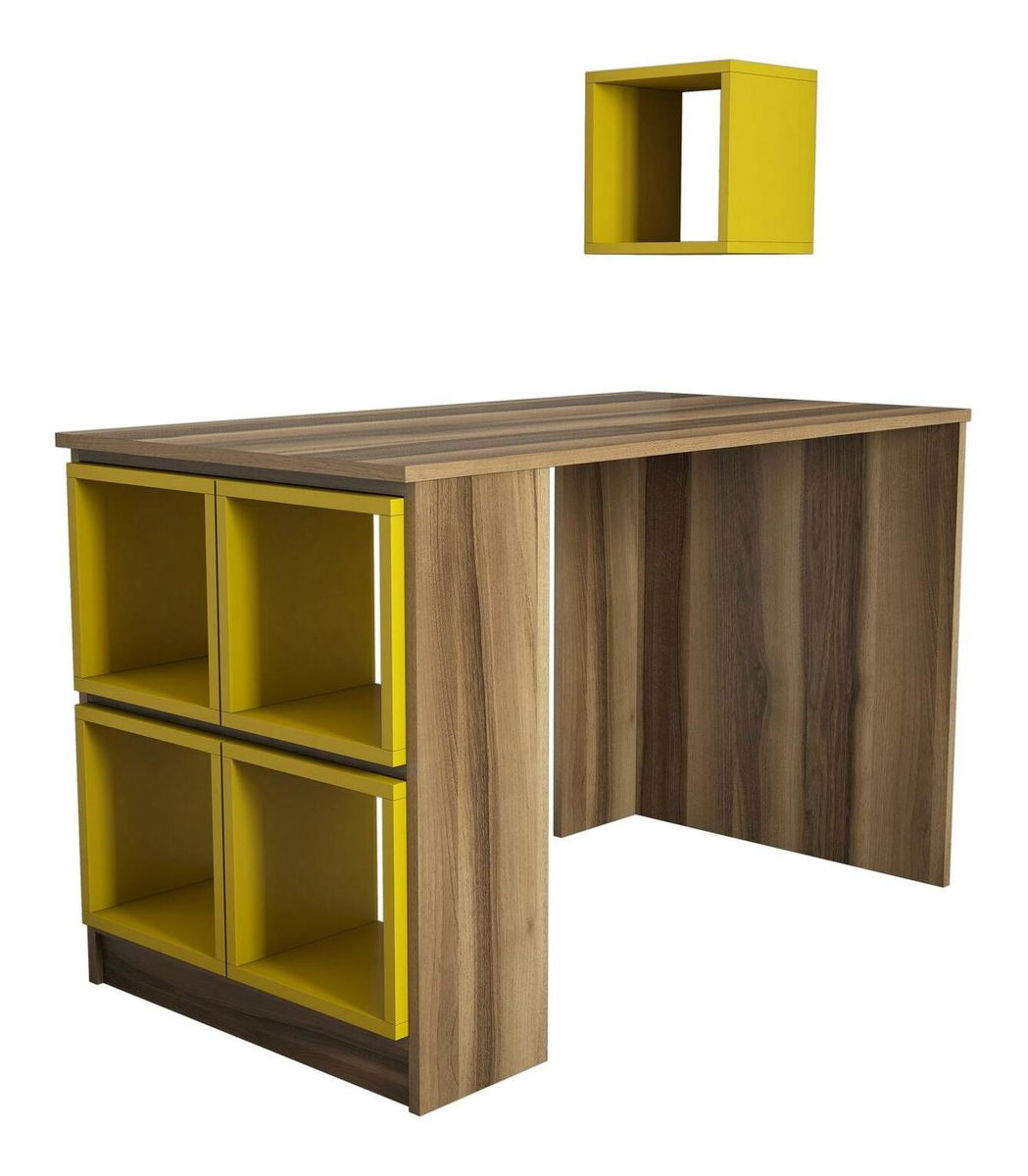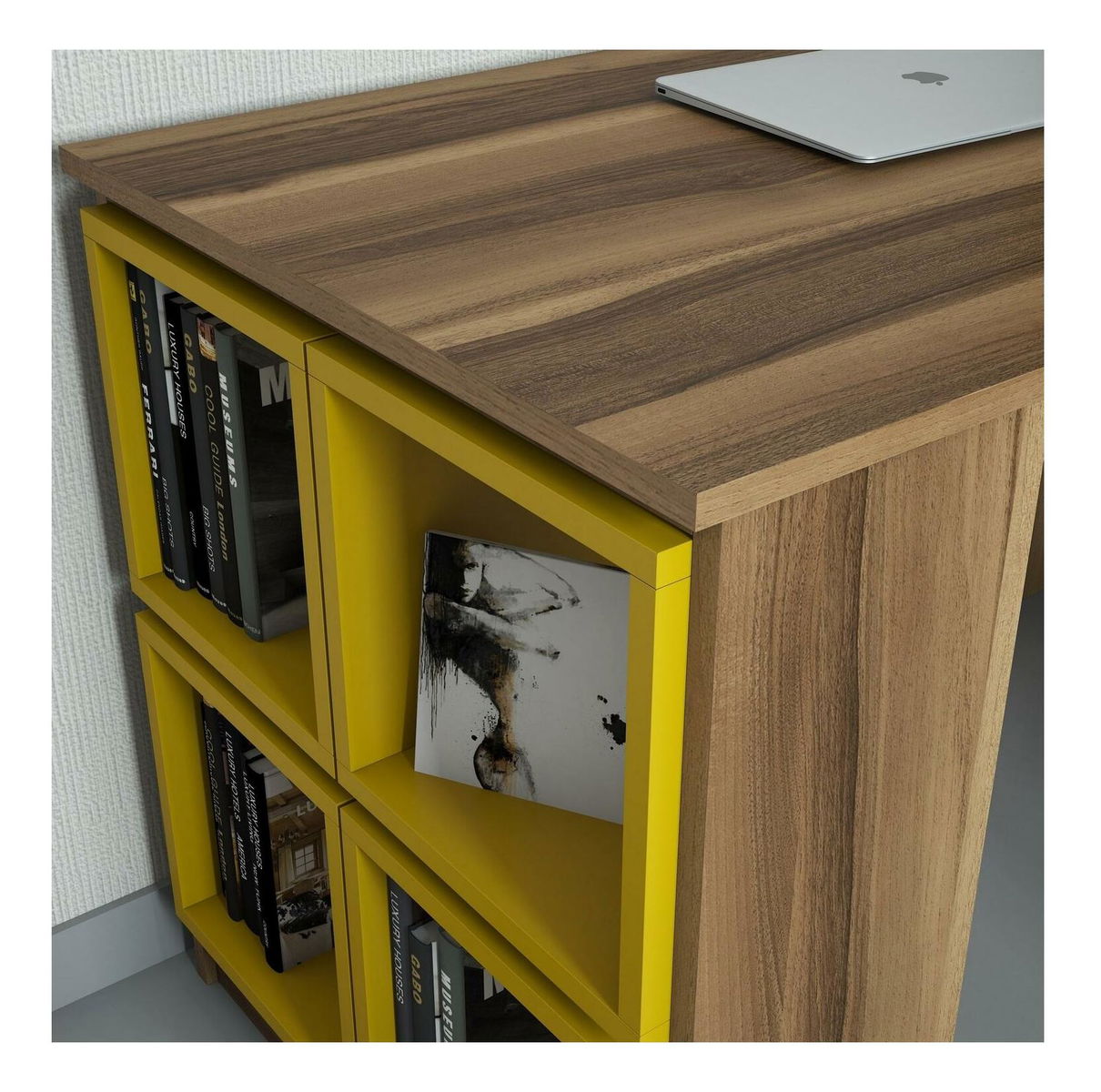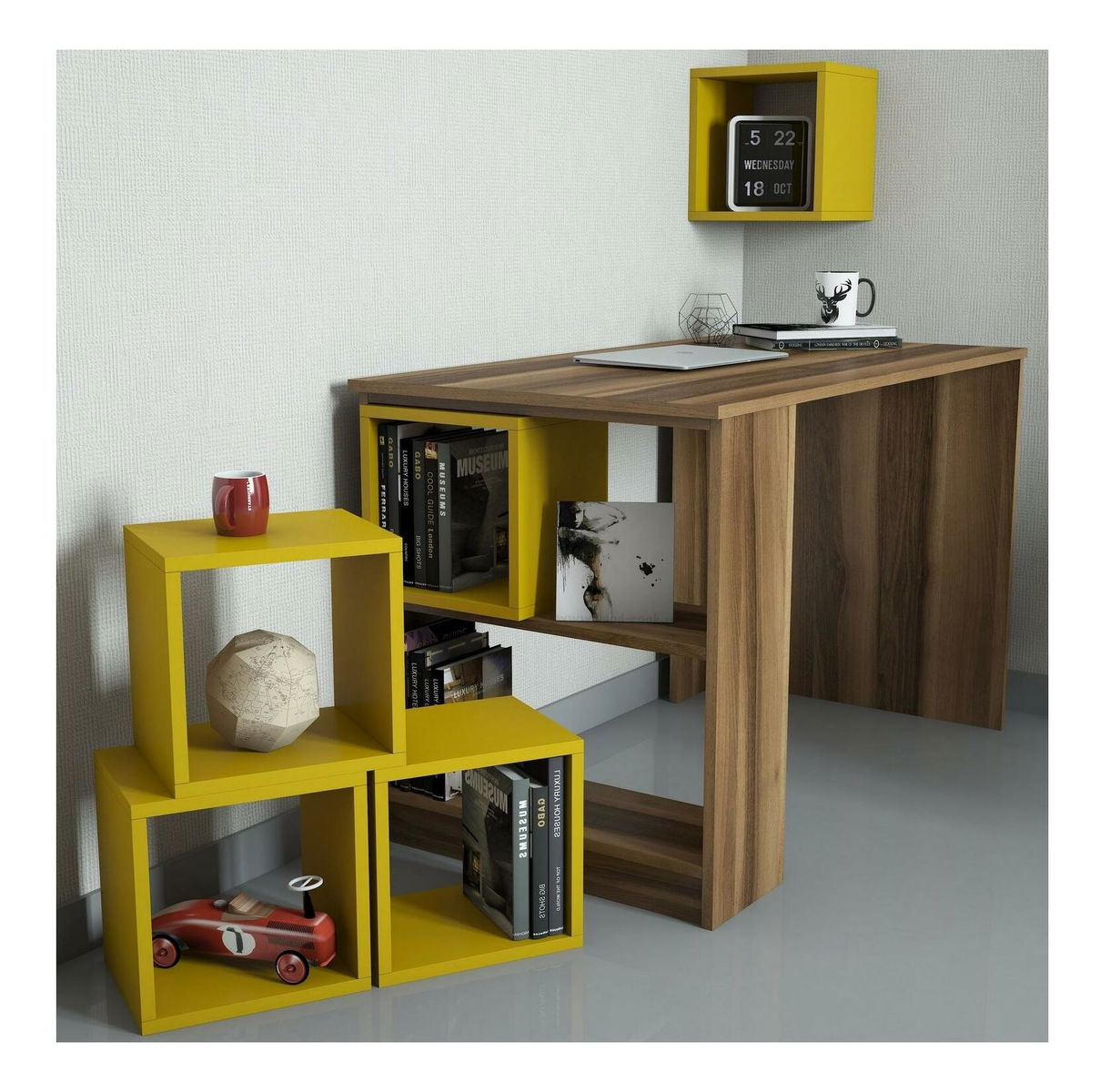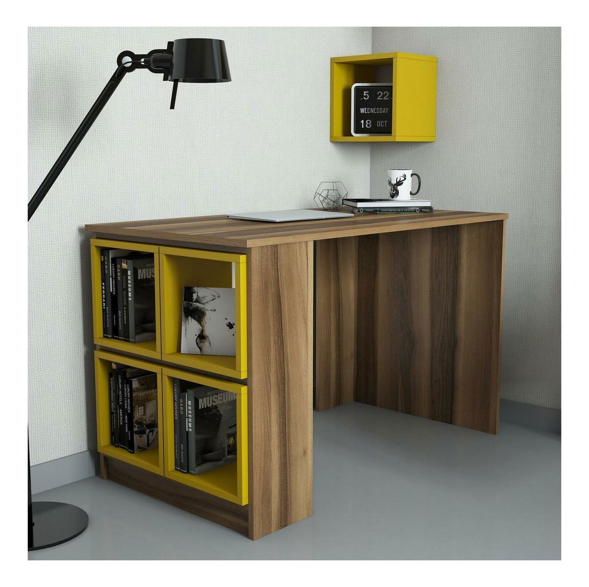 - PC stolek s policí Blanchet (ořech + žlutá)