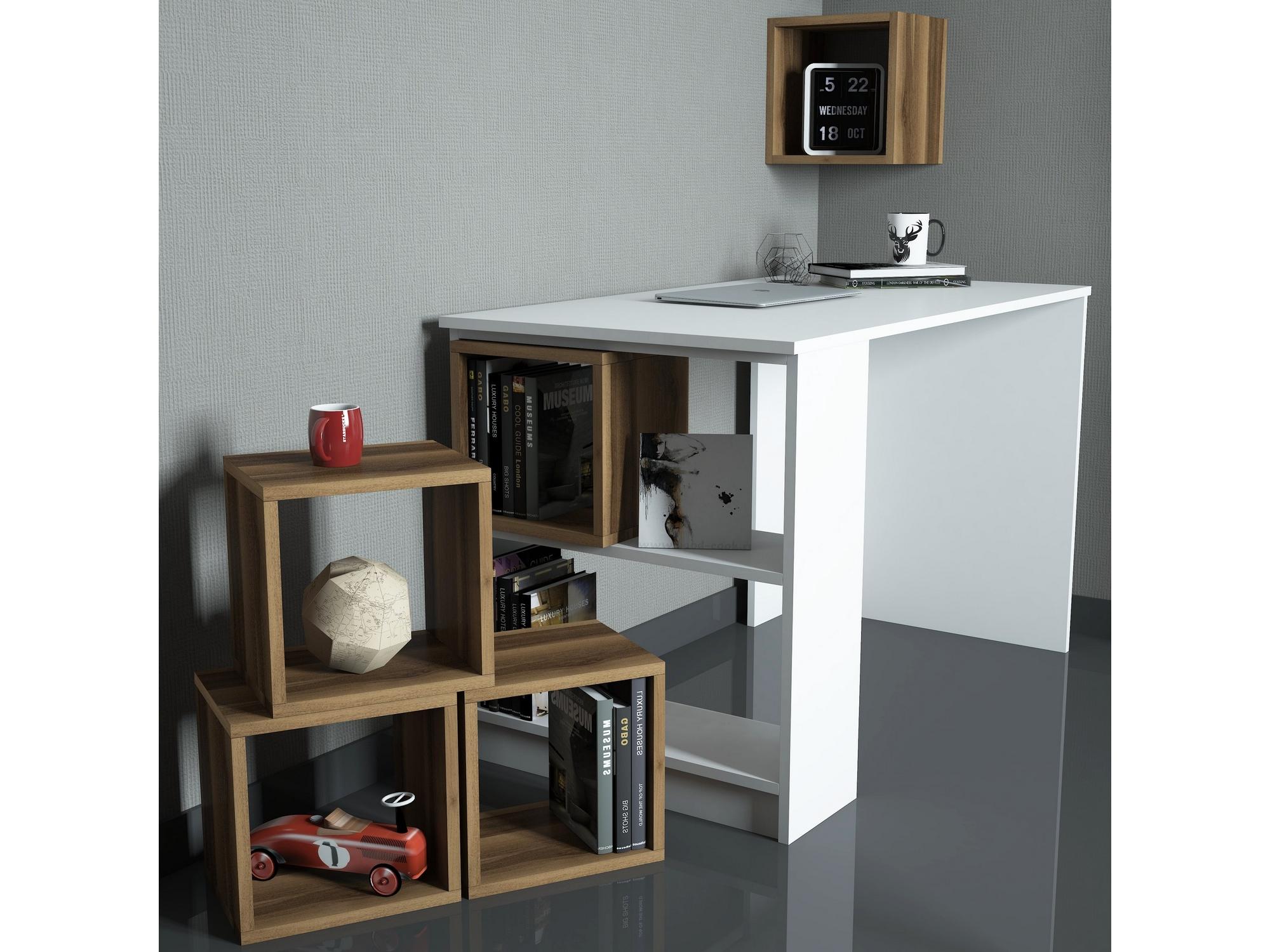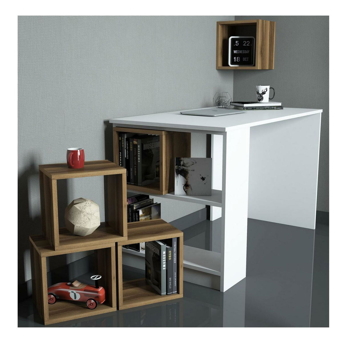 - PC stolek s regálem Blanchet (bílá + ořech)