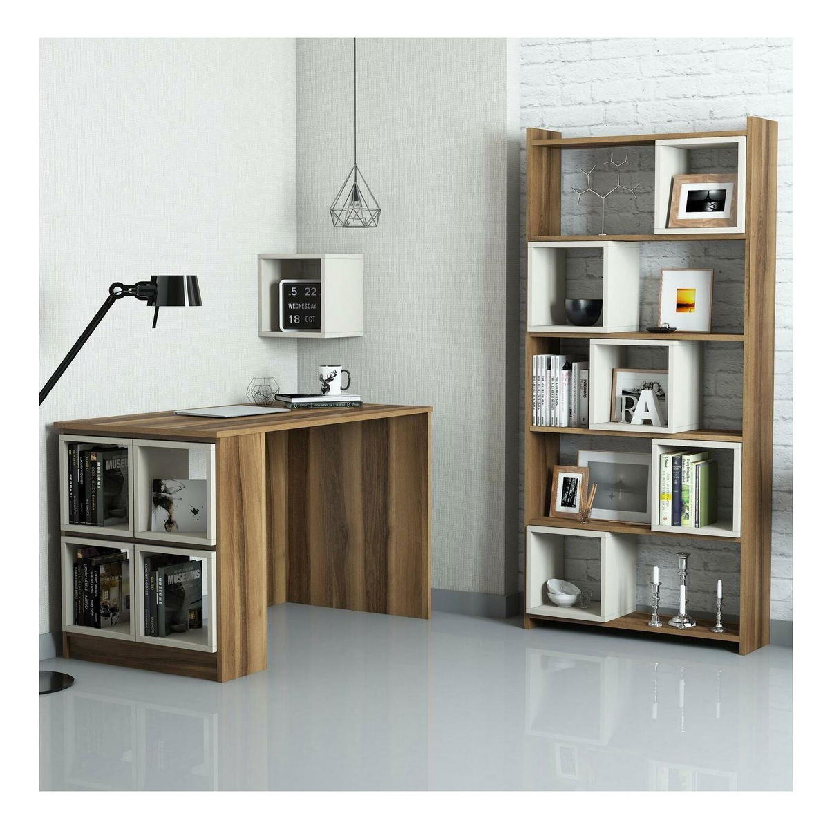 - PC stolek s regálem Blanchet (ořech + krémová)