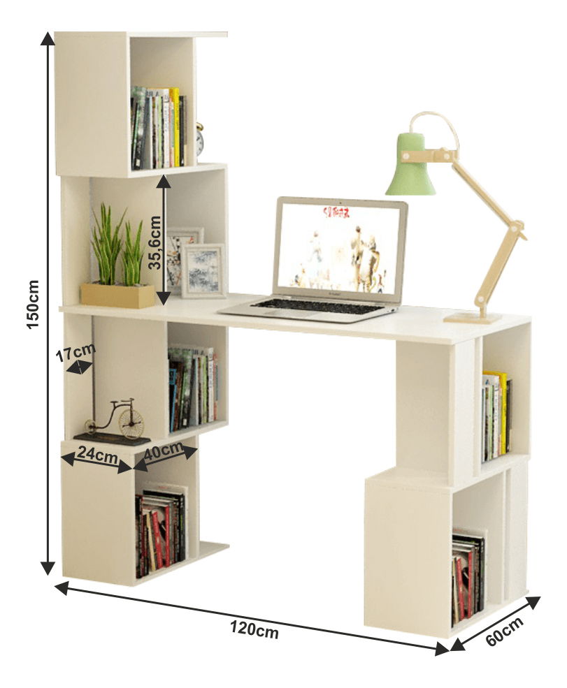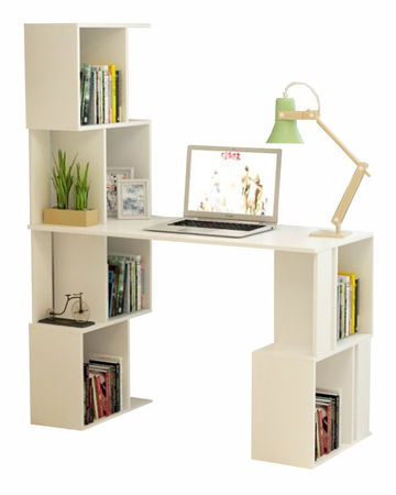 PC stolek s regálem na jedné straně a poličkami na druhé je ideální do menších průstřel, kde potřebujete více úložného prostoru. Díky vysokému regálu můžete mít po ruce všechny věci potřebné při práci.