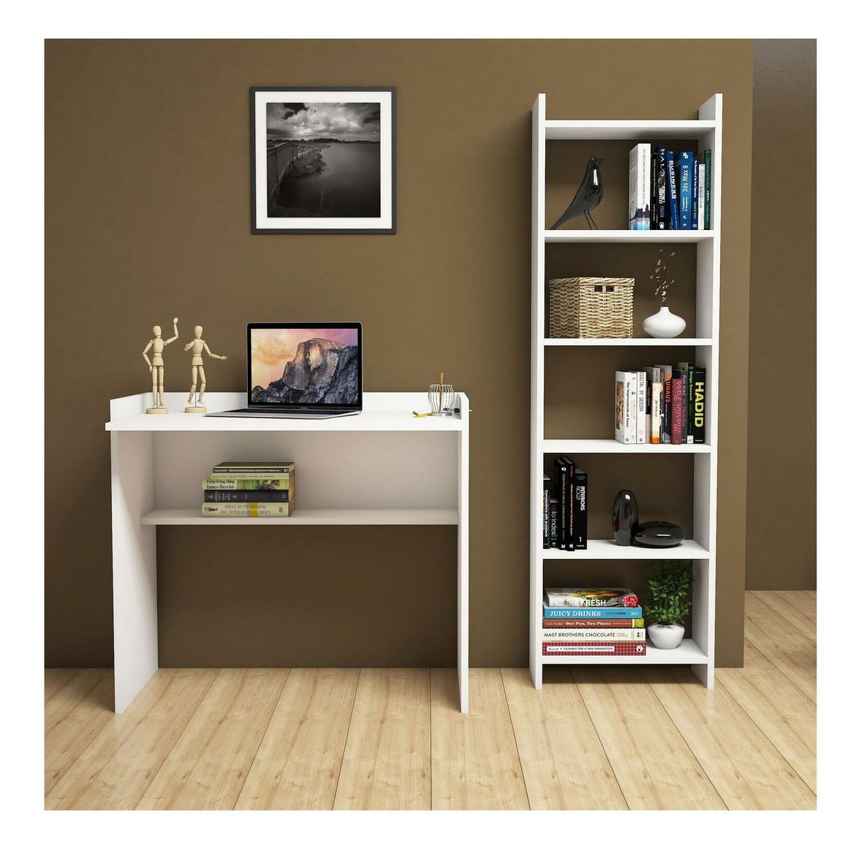 tloušťka: 18 mm, velikost studijního stolu: šířka: 90 cm, výška: 80 cm, hloubka: 58 cm, velikost police: šířka: 48,6 cm, výška: 160 cm, hloubka: 22 cm, výška police: 27,8 cm