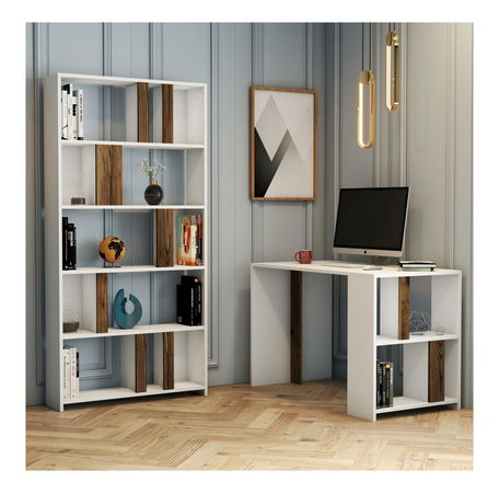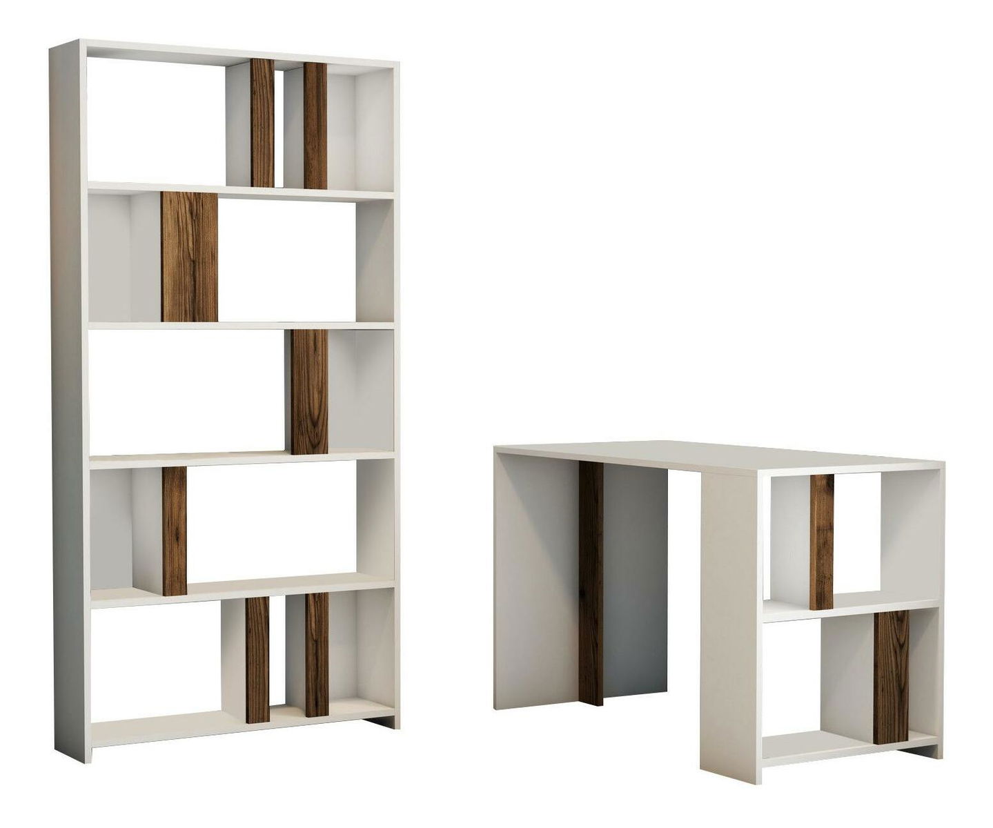 PC stolek s regálem Limba (bílá + ořechové dřevo)
