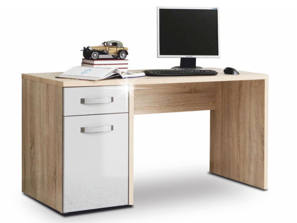 Praktický PC stolek Teodoz vynikne v každé pracovně, studentském pokoji nebo kanceláři. V levé části má zásuvku a skříňku. Vyznačuje se také pěkným barevným provedením - dub sonoma v kombinaci s extra vysokým bílým leskem.