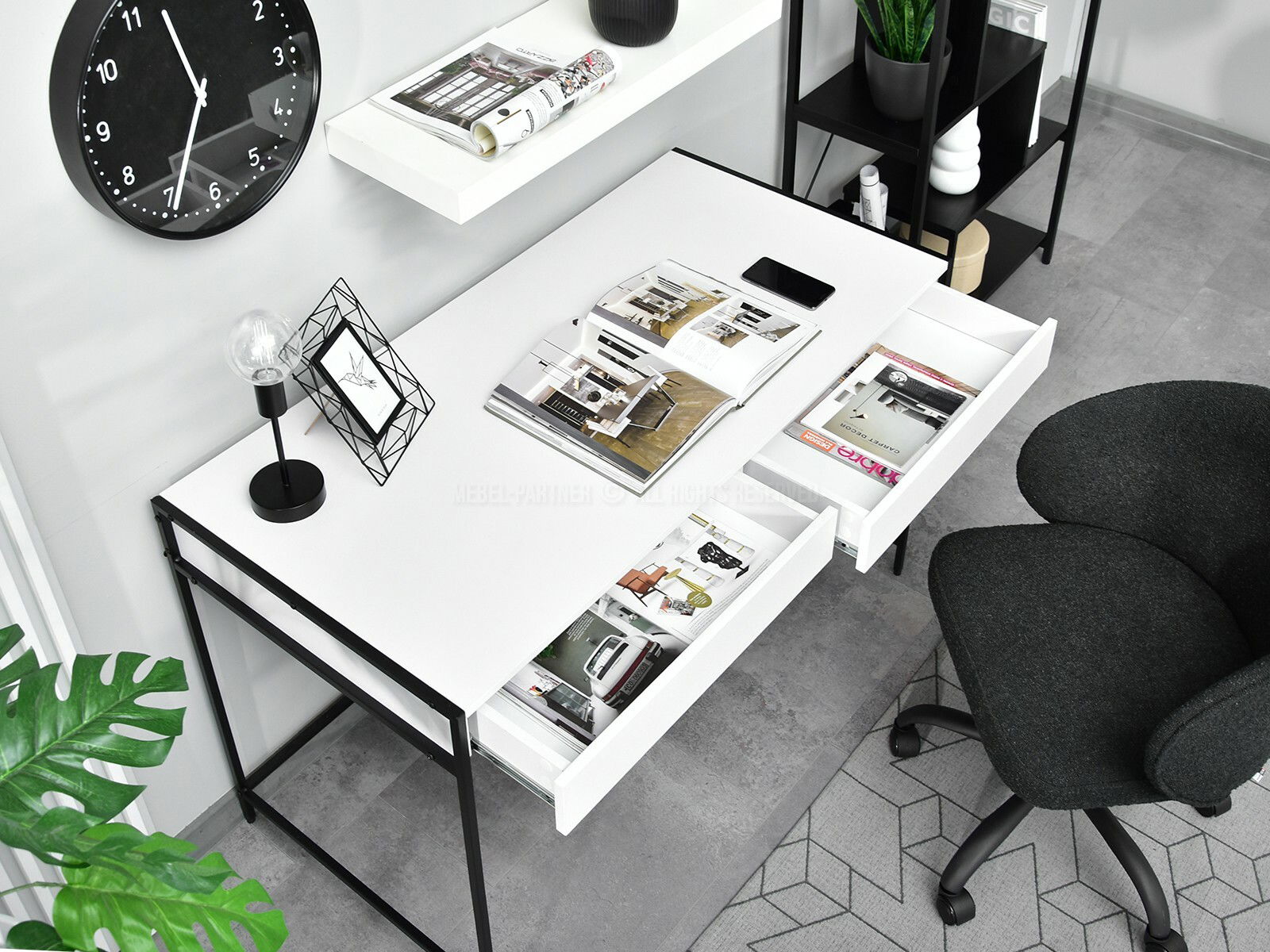PC stolek Unica (bílá + černá)