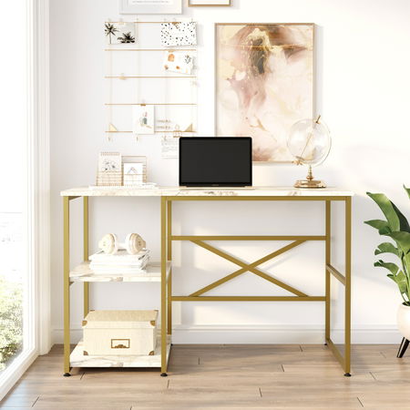 PC stolek Vega 23 (Bílý mramor + Zlatá)