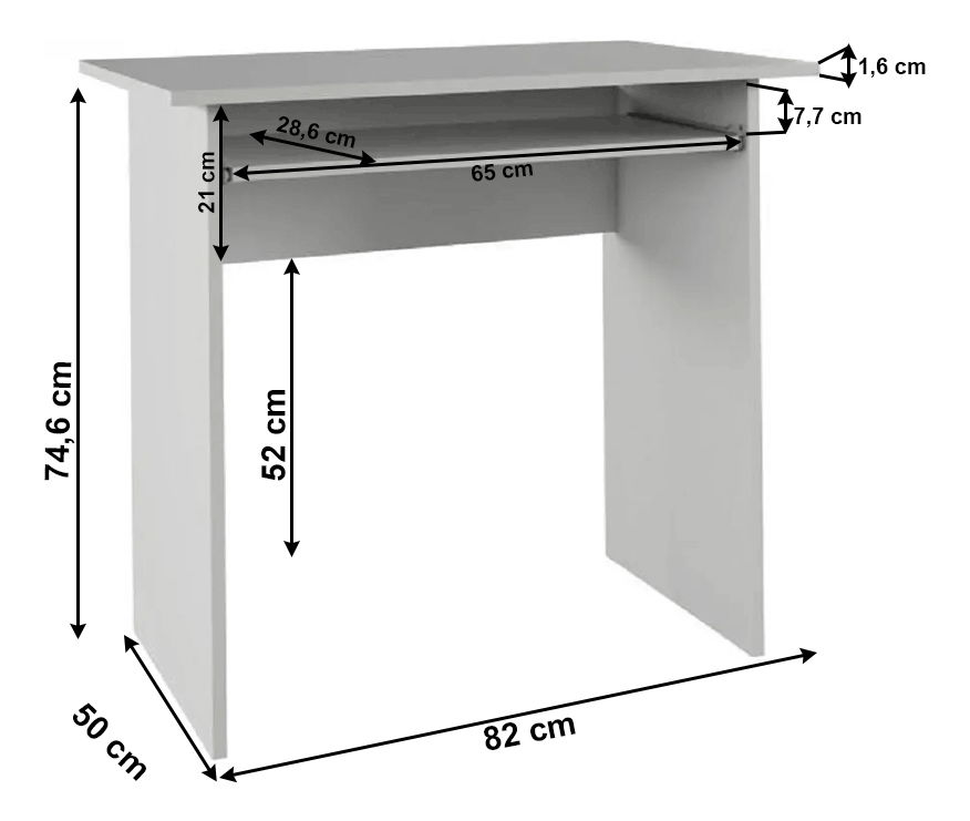 PC stolek Virnelis (bílá) o výšce 74 cm a hloubce 51 cm je ideální pro pracovní prostředí. Tento stolek neobsahuje úložné prostory, ale disponuje zásuvkou, na které se umísťuje klávesnice. Stolek je vyroben z DTD laminované desky o tloušťce 16 mm a výsuvná police má rozměry 65 x 28,8 cm a výšku 50 cm. Jeho jednoduchý design a bílá barva umožňují snadné kombinování s ostatním nábytkem a přizpůsobení každému interiéru. PC stolek Virnelis je pohodlný pracovní stolek pro každodenní použití.