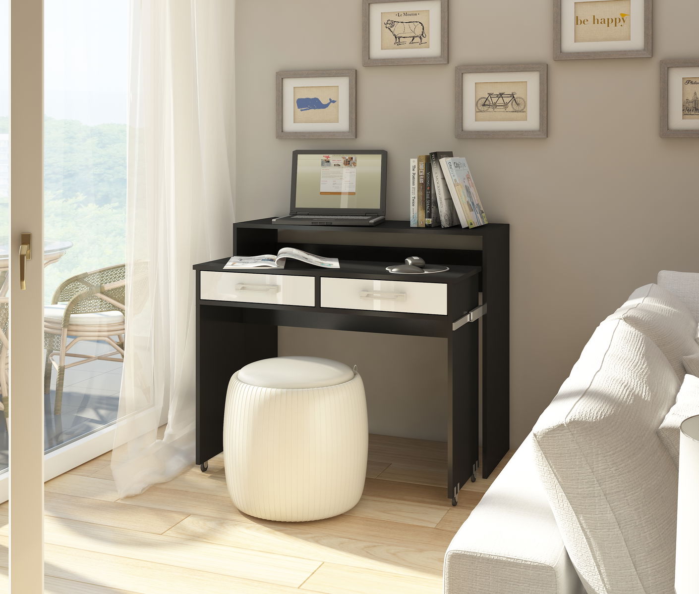 ZobrazitS PC stolkem Zoom ušetříte prostor ve vašich domácnostech. Má výsuvnou část na kolečkách, takže po práci ho víte jednoduše zasunout zpět. Stolek má dvě praktické zásuvky na odkládání dokumentů. Na vrchní desku stolku umístíte notebook nebo monitor. Barevné provedení PC stolku Zoom je černá v kombinaci s bílým leskem.
