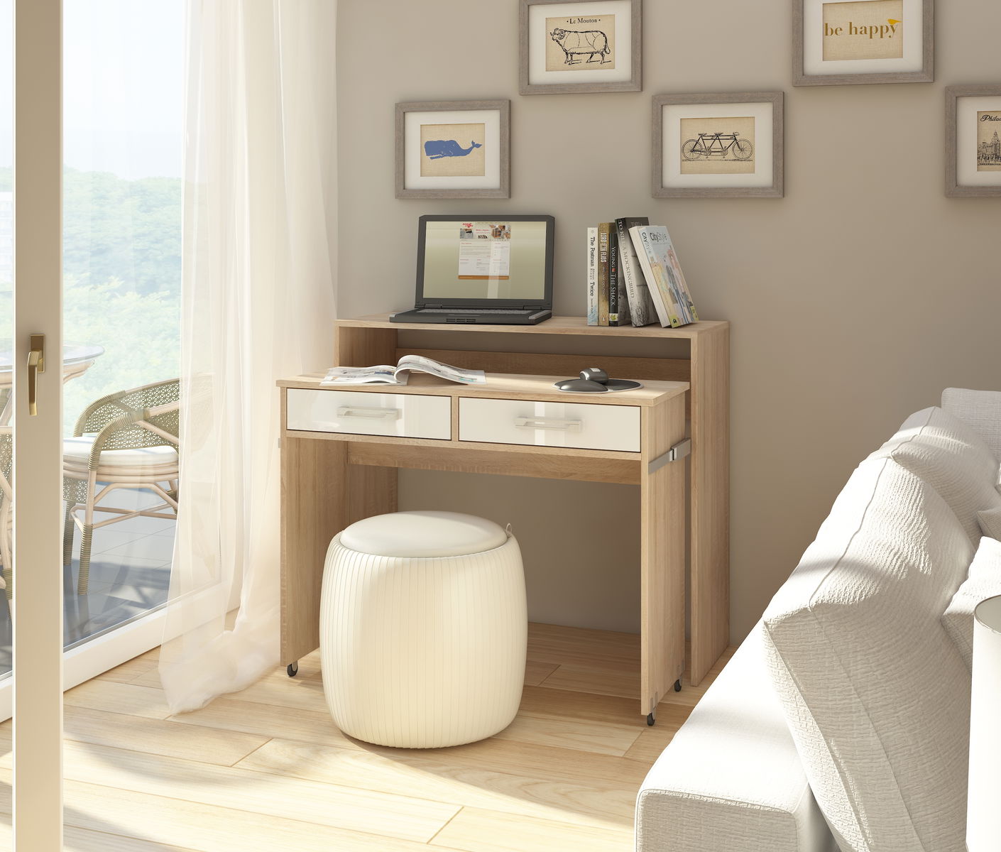 PC stolek Zoe dub sonoma světlý + lesk bílý