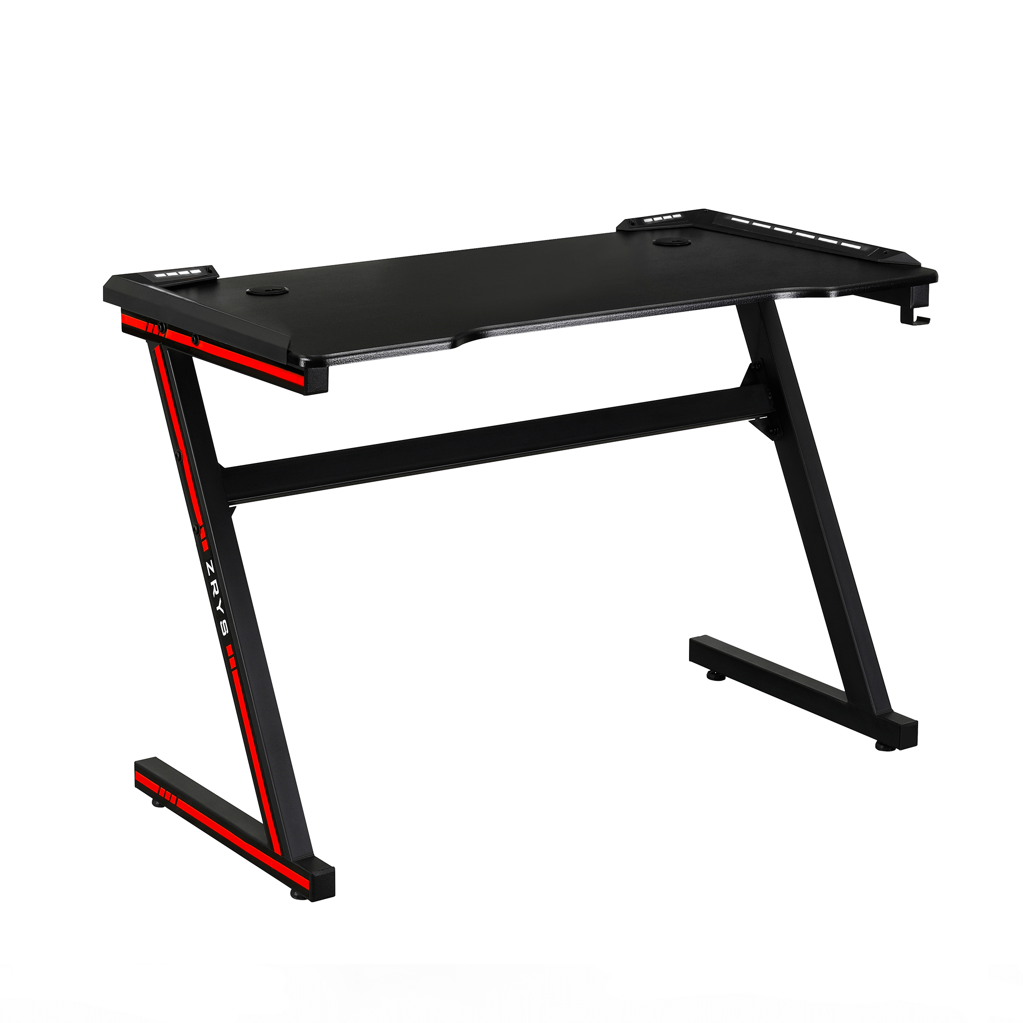 Zárukou výhry v každé PC hře je náš herní stůl Marcelene ve tvaru Z. Přední hrana pracovní desky je tvarovaná tak, aby se hráč mohl bez omezení přisunout ke stolu. V desce jsou dva otvory na kabely a praktický držák na sluchátka.