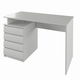 PC stůl Mundi NEW (bílá) o výšce 75 cm a hloubce 60 cm je moderní a minimalistický stůl na PC, který nabízí nejen dostatek pracovní plochy, ale také úložné prostory. Stůl je vybaven čtyřmi zásuvkami a otevřenou poličkou na levé straně. Materiál, ze kterého je stůl vyroben, je DTD laminovaná deska s ABS hranami a tloušťkou 1,6 cm. Prostor na židli má šířku 72,6 cm, výšku 73 cm a hloubku 47,5 cm. Stůl je dodáván v demontu.
