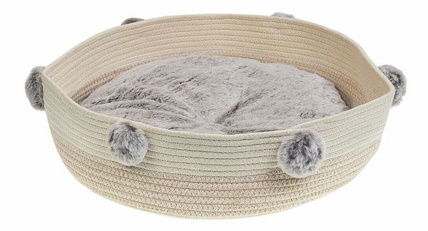 Tato kulatá postel pro kočku nebo pejska se stane oblíbeným místem k odpočinku pro vaše domácí zvířátko. Vnější část je vyrobena z odolné bavlny a vnitřek je polstrován měkkou a na dotek jemnou polyesterovou tkaninou, kterou lze prát. Postel zdobí šedé bambule, díky kterým vypadá hravě a roztomile.