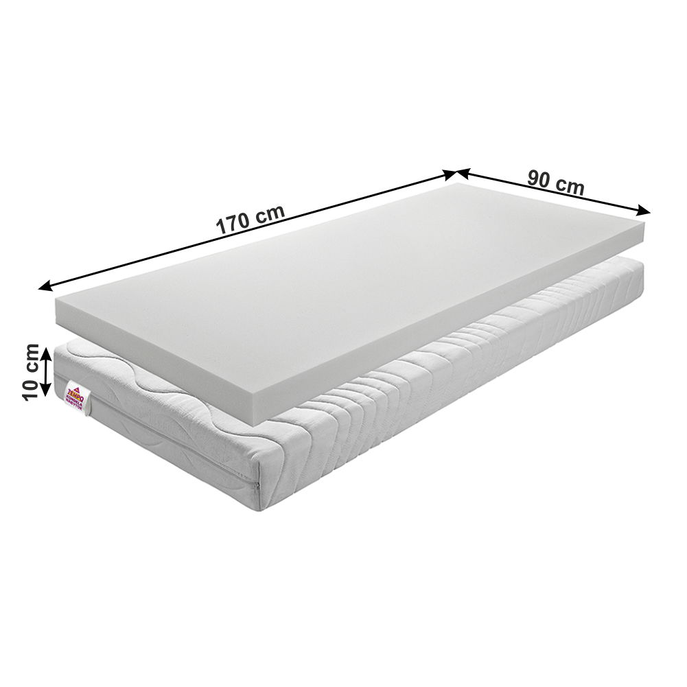 Pěnový matrace Estira s rozměry 90x170 cm a výškou 10 cm poskytuje pohodlný spánek a dokonalou podporu těla. Tato matrace je vyrobena z kvalitních materiálů, které zajišťují její vysokou odolnost a dlouhou životnost. je hypoalergenní a odolná proti prachu a roztočům. Matrace je velmi snadno omyvatelná a udržovatelný, což z něho dělá skvělou volbu pro každodenní použití.