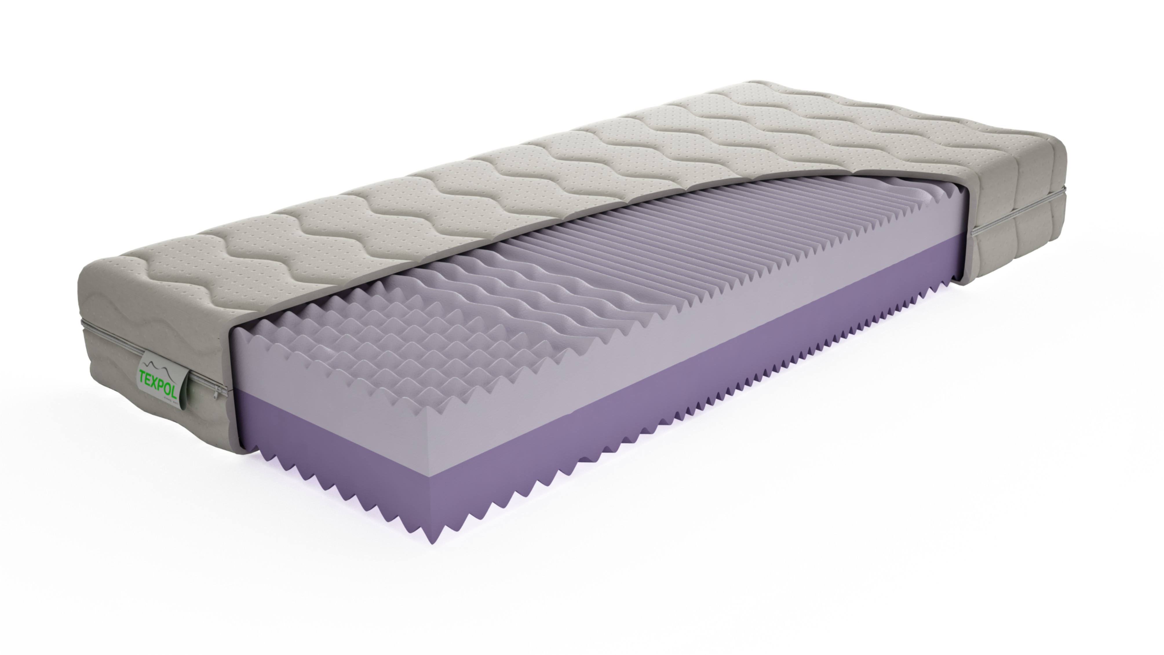Oboustranná matrace složený z komfortní PUR pěny s 5-zónovou profilací, pro dokonalé uvolnění svalstva během spánku. Výška jádra matrace je 14 cm, s potahem cca 15 cm. Nosnost matrace je do 100 kg. P>