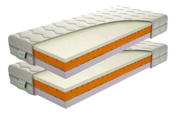 ZobrazitKvalitní, zdravotní, matrace z paměťové pěny na její vrchní části. Uprostřed matrace je umístěna kokosová deska, která zajistí jeho dlouhou životnost a optimální rozložení váhy uživatele. Spodní část je z kvalitní PUR pěny, která se vyznačuje svou vysokou elasticitou a prodyšností.