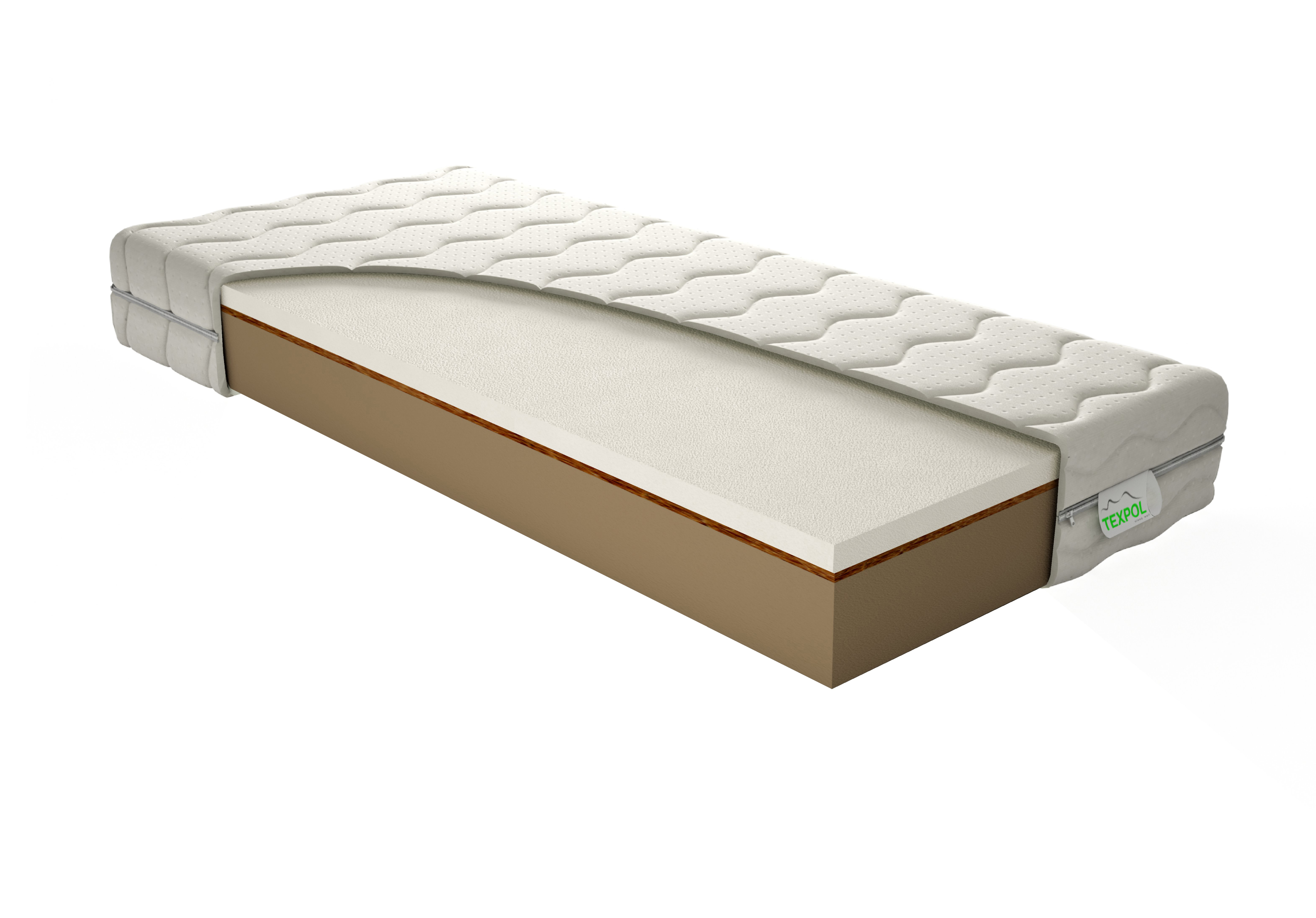 Oboustranná matrace, který se skládá ze 3 různých materiálů. Vrchní část je paměťová VISCO pěna pod kterou je deska z kvalitního žíní, která udržuje zdravou mikroklima v matraci. Navíc je dokonale pružná a v kombinaci s paměťovou VISCO pěnou poskytuje Vašemu tělu pohodlí a oporu zároveň. Spodní část matrace tvoří tužší PUR pěna vyšší hustoty díky níž je matrace určen i pro ty kteří preferují tvrdší spaní.