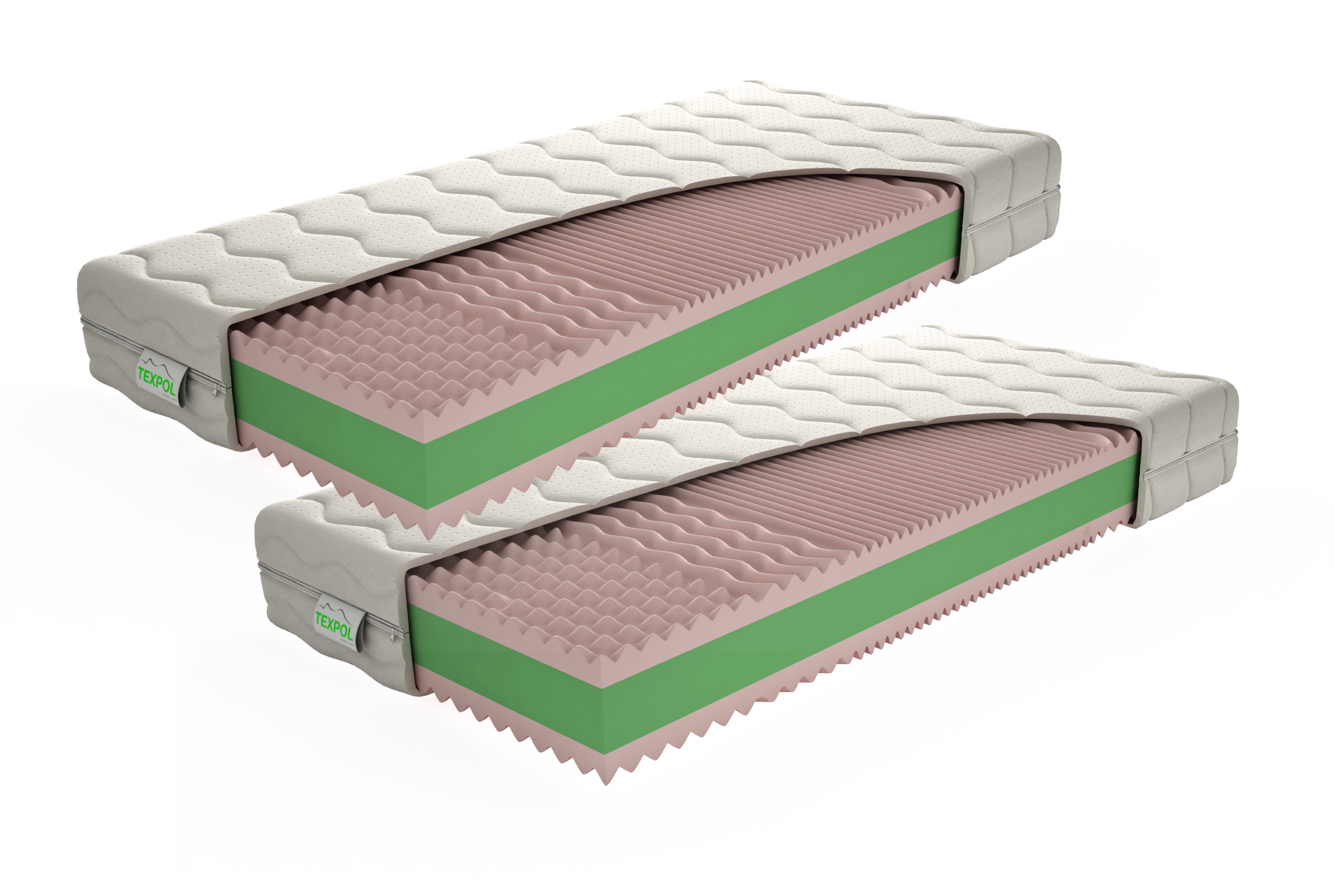 Pěnová matrace, jejíž nosnou střední část tvoří PUR pěna se zvýšenou objemovou hustotou 35 kg/m3, díky které je tato matrace vhodná i pro uživatele s vyšší váhou. Obě ložné strany matrace jsou z PUR pěny, jejíž hustota je 25 kg/m3 a jsou tvarovány 5-zónovou profilací (tzv. fyziosystém), která zajišťuje uvolnění svalstva během spánku.