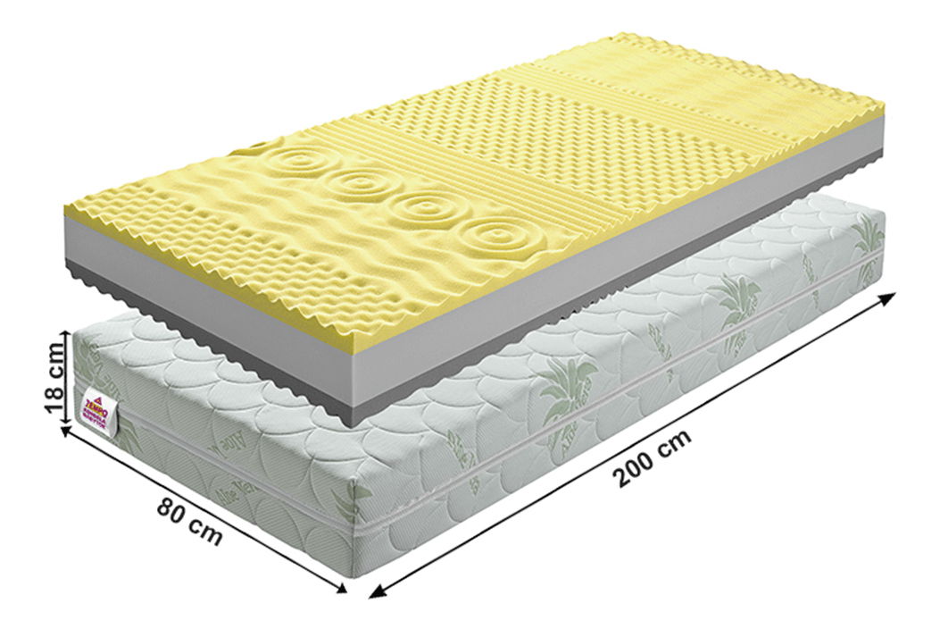 Sladké sny, líné povalování nebo dlouhé upovídané noci, o to vše se postará komfortní sendvičová matrace BE TEMPO VISCO 80x200 cm. Vyroben je z kvalitní pěny s povrchovou profilací. Taková profilace prokrvuje pokožku a uvolňuje svalstvo během spánku. Matrace je oboustranný a nabízí možnost výběru tvrdší a měkčí strany. Tvoří ho paměťová pěna, přičemž jádro je z PUR pěny. Paměťová pěna ideální reaguje na tlak a teplo, matrace se tak dokáže optimálně přizpůsobit tvaru lidského těla, dochází k rovnoměrnému rozložení váhy a ke snížení protitlaku matrace, působícího na organismus. Svalstvo je během spánku naprosto uvolněné, což přispívá k celkové regeneraci organismu. PUR pěna vyniká výbornými vlastnostmi. Matrace z PUR pěny je na začátku tužší, používáním se stává komfortnějším aniž by ztrácel na objemu. Matrace z PUR pěny jsou velmi oblíbené kvůli svým ortopedickým a antialergickým vlastnostem.