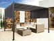 Travte čas s rodinou a přáteli venku i během horkých letních dnů a pořiďte si přístřešek, který ochrání vás a váš zahradní nábytek. Robustní pergola je vyrobena z odolné oceli s práškovým nástřikem, která zaručuje stabilní konstrukci. Ocelový rám je pokryt posuvným stínítkem odolným vůči UV záření, který lze posouvat z jedné strany na druhou. Pokud zapnete solární panel a počkáte až se setmí, LED světla se automaticky rozsvítí a osvětlí celý prostor.