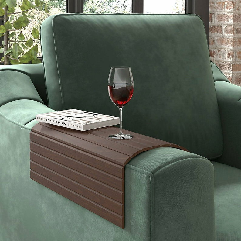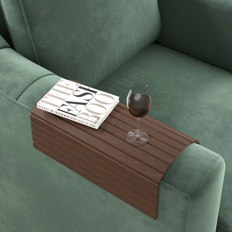 ZobrazitDřevěná podložka je moderní a mimořádně krásný doplněk interiérového designu. Je určena k umístění na boky čalouněného nábytku, čímž vytváří stojan na nápoje nebo občerstvení. Může se také použít jako malý stolek na povrchu postele, pohovky nebo jiného nábytku, kde ochrání před teplotou a vytvoří tvrdý a rovný povrch. Podložka se skládá z dřevěných prvků nalepených na bavlněném plátně.“