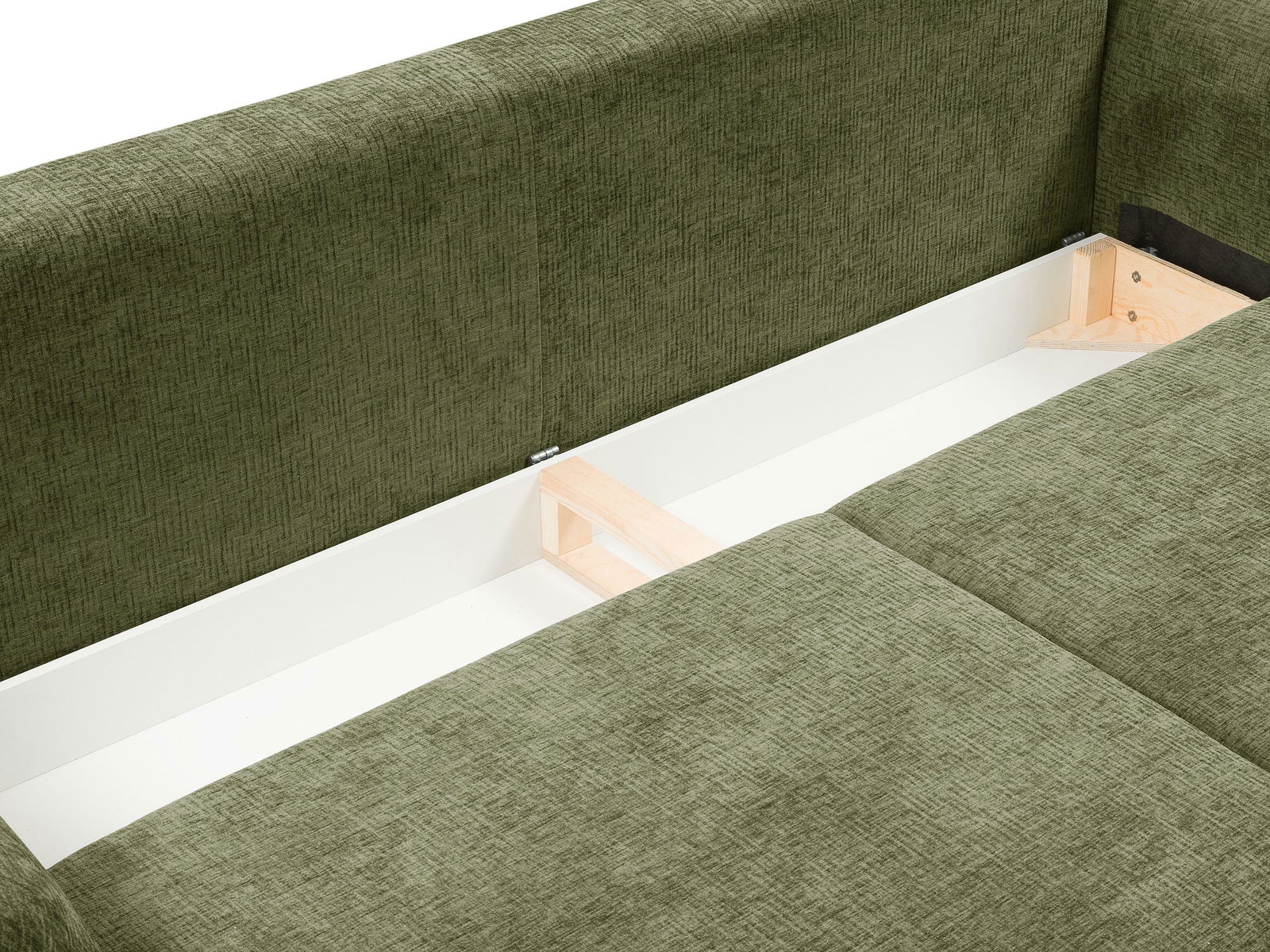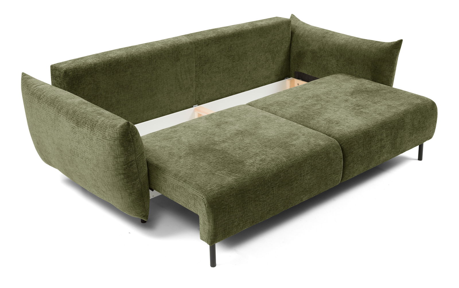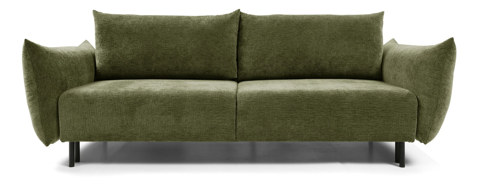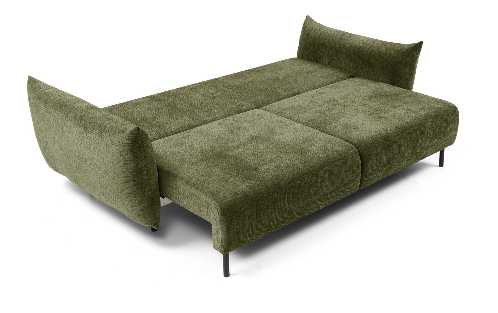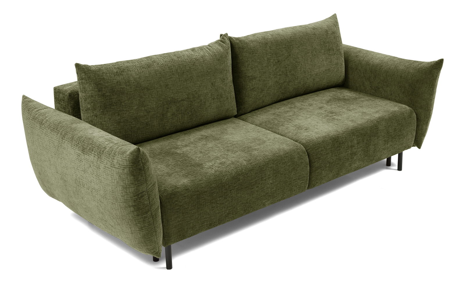 ZobrazitTato pohovka spojuje elegantní design s praktickými funkcemi a pohodlím. Její konstrukce je vyrobena z borovicového dřeva a dřevotřísky, což zajišťuje pevnost a dlouhou životnost. Sedák je vyplněn PUR pěnou T-3042, která poskytuje optimální podporu a pohodlí. Pohovka je rozkládací, přičemž nabízí plochu na spaní o rozměrech 145 x 200 cm. Výška sezení je 44 cm a hloubka sezení 63 cm, což zajišťuje pohodlné posezení. Zádovou opěrku tvoří polštáře, které zvyšují komfort. Pohovka má velký úložný prostor o rozměrech 197,6 x 67 x 12,5 cm, ideální pro uschování různých věcí. Hřbet je potažen stejnou látkou, což dodává pohovce jednotný vzhled. Nastavitelné opěrky hlavy ani područky nejsou součástí designu. Nožičky jsou černé kovové, vysoké 15 cm a dodávají pohovce moderní vzhled a stabilitu. Typ rozkládání je DL. Tkanina „Ovet the horizont“ má jemný vlas, který je velmi příjemný na dotek. Po přejetí rukou se vlas změní směr, což vytváří efekt tvz. mapování, populární v moderním designu. Tento efekt způsobuje, že tkanina může z různých úhlů vypadat rozdílně. Gramáž tkaniny je 430 g/m2, složení 100% polyester, s odolností 28 000 – 32 000 cyklů Martindale. Pohovka se dodává ve dvou balících.