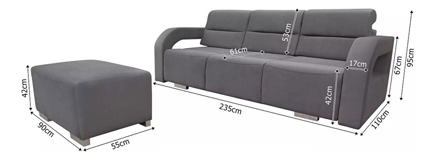 - Sedací část má hloubku 61 cm a výšku 42 cm, což poskytuje dostatek prostoru pro relaxaci.