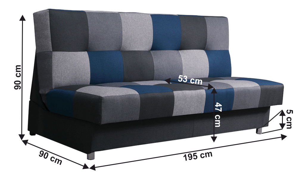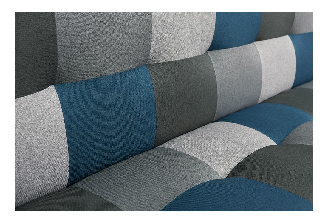 Pohovka Arabella je řešením pro ty, kteří hledají praktický a stylový kus nábytku do obývacího pokoje, pracovny či místnosti pro hosty. Kombinace modré a šedé látky vytváří moderní patchworkový design, který oživí různé interiéry – od minimalistického až po industriální nebo skandinávský styl.