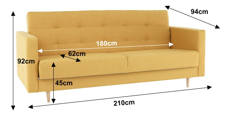 Praktičnost tohoto kusu nábytku oceníte díky rozkládací funkci, která promění pohovku na pohodlnou plochu na spaní o rozměrech 124 x 180 cm, a úložnému prostoru nebo jiné drobnosti. Sedací část je vybavena bonellovou pružinou, která zajišťuje komfortní sezení o výšce 45 cm a hloubce 62 cm, což ocení všichni členové domácnosti. životnost a snadnou údržbu. Přírodní dřevěné nohy v kombinaci s hořčicovou barvou vytvářejí harmonický kontrast, který se snadno kombinuje s různými styly – od minimalistického, přes severský až po industriální interiér. Pro doplnění obývacího prostoru doporučujeme moderní minimalistické obývací stěny, které podtrhnou skandinávský styl sedačky. sezení Pohovka Armendia je vhodnou volbou pro ty, kteří hledají spojení funkčnosti, kvality a moderního designu v jednom. Vytvořte si útulný a praktický prostor s tímto multifunkčním kusem nábytku, který vám zpříjemní každodenní relax i návštěvy.Shrnutí