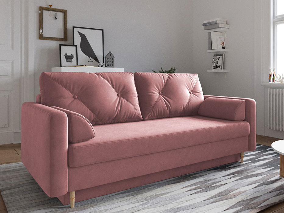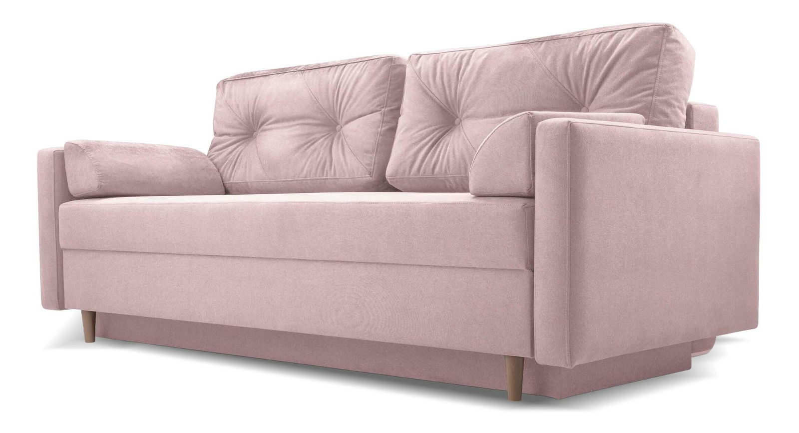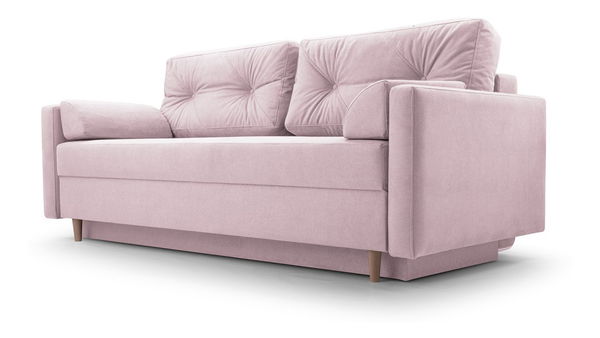 Třísedačka Asial (růžová) o výšce 74 cm a hloubce 100 cm Queen's 19 je pohovka s masivním dřevěným a dřevotřískovým rámem. Sedadlo je vybaveno bonellovou pružinou o tloušťce drátu 2,4 mm a pěnou T30 o tloušťce 3 cm. Podpůrný mechanismus otevírání zajišťuje snadné a plynulé rozkládání na plochu spaní 190 x 155 cm typu DL. Tato praktická a elegantní trojsedačka je vyrobena z kvalitních materiálů, které zaručují její trvanlivost a pohodlí při každodenním používání.
