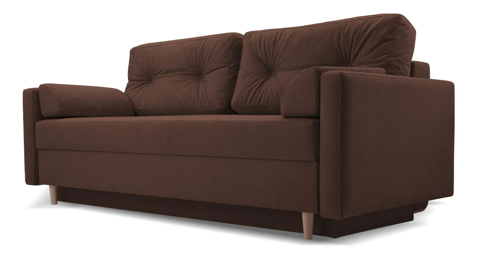Pohovka trojsedačka Asial je tmavě hnědá sedací souprava o výšce 74 cm a hloubce 100 cm. Je to ideální volba pro moderní domácnosti, které hledají pohodlné a stylové nábytkové řešení. Rám pohovky je vyroben z masivního dřeva a dřevotřísky, které zaručují její pevnost a trvanlivost. Sedadlová část je vybavena bonellovou pružinou o tloušťce drátu 2,4mm a pěnou T30 o tloušťce 3cm pro dokonalé pohodlí. Pohovka disponuje podpůrným mechanismem otevírání, který umožňuje rozložení na plochu spaní 190x155cm typu DL. Celkově se jedná o kvalitní nábytek, který poskytuje vysoký komfort a zároveň potěší svým moderním designem.